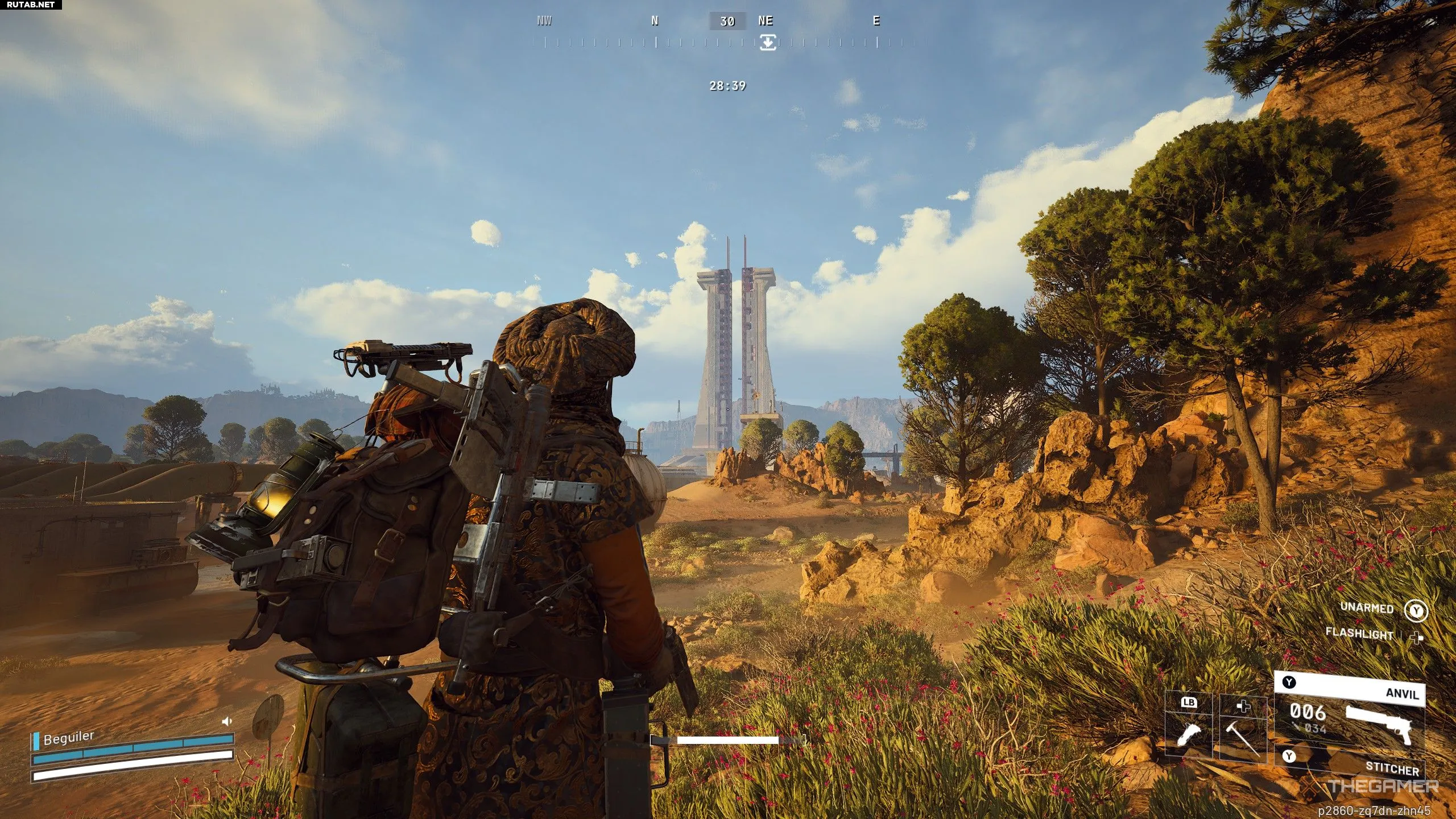 Если в Космопорте не везет, Пик Пилигрима в Синих Вратах — отличное место для поиска поврежденных радиаторов. На северо-востоке карты эта локация разделена на две зоны: огромную башню и большой подземный бункер. Мне больше везло в подземной части Пика Пилигрима, где много взламываемых контейнеров и мест для лута. Учтите, что по Синим Вратам сложно перемещаться, особенно в одиночку — берите с собой дополнительные медикаменты и патроны.