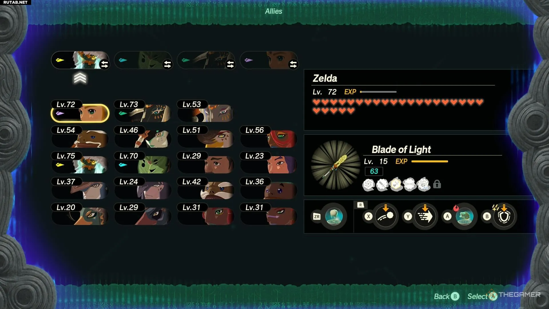Как и в предыдущей Age of Calamity, в этой игре вам доступна обширная карта Хайрула, позволяющая выбирать миссии, посещать магазины и получать улучшения для персонажей. Когда у вас есть необходимые ресурсы для покупки улучшения, иконки персонажей на карте будут подсвечиваться золотым цветом.