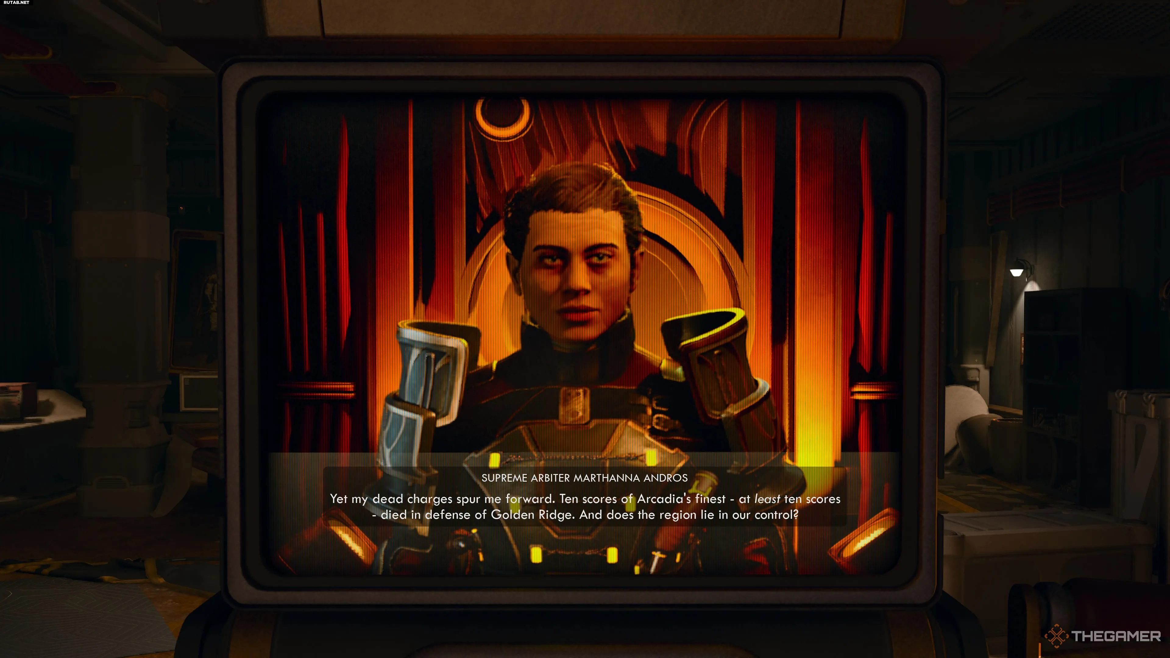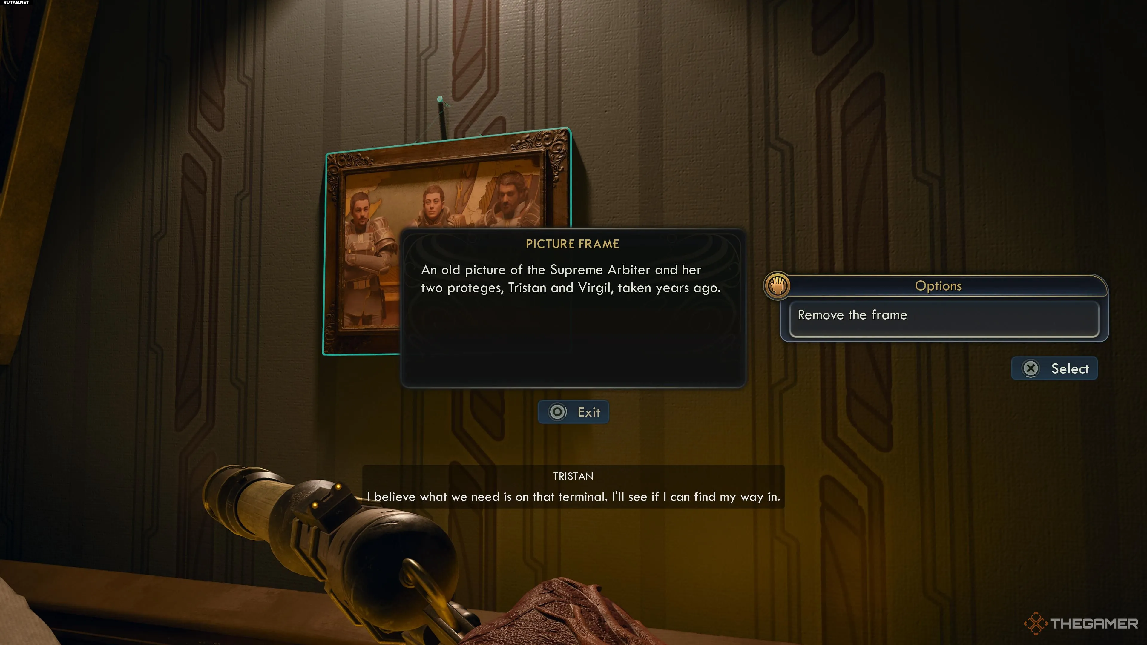 Попав в офис Верховного арбитра, Тристан сообщает, что вам нужно искать улики, пока он изучает терминал. В комнате много объектов для осмотра, но нужный будет выделен маркером задания — оставьте его на потом. Вот что ещё можно исследовать: