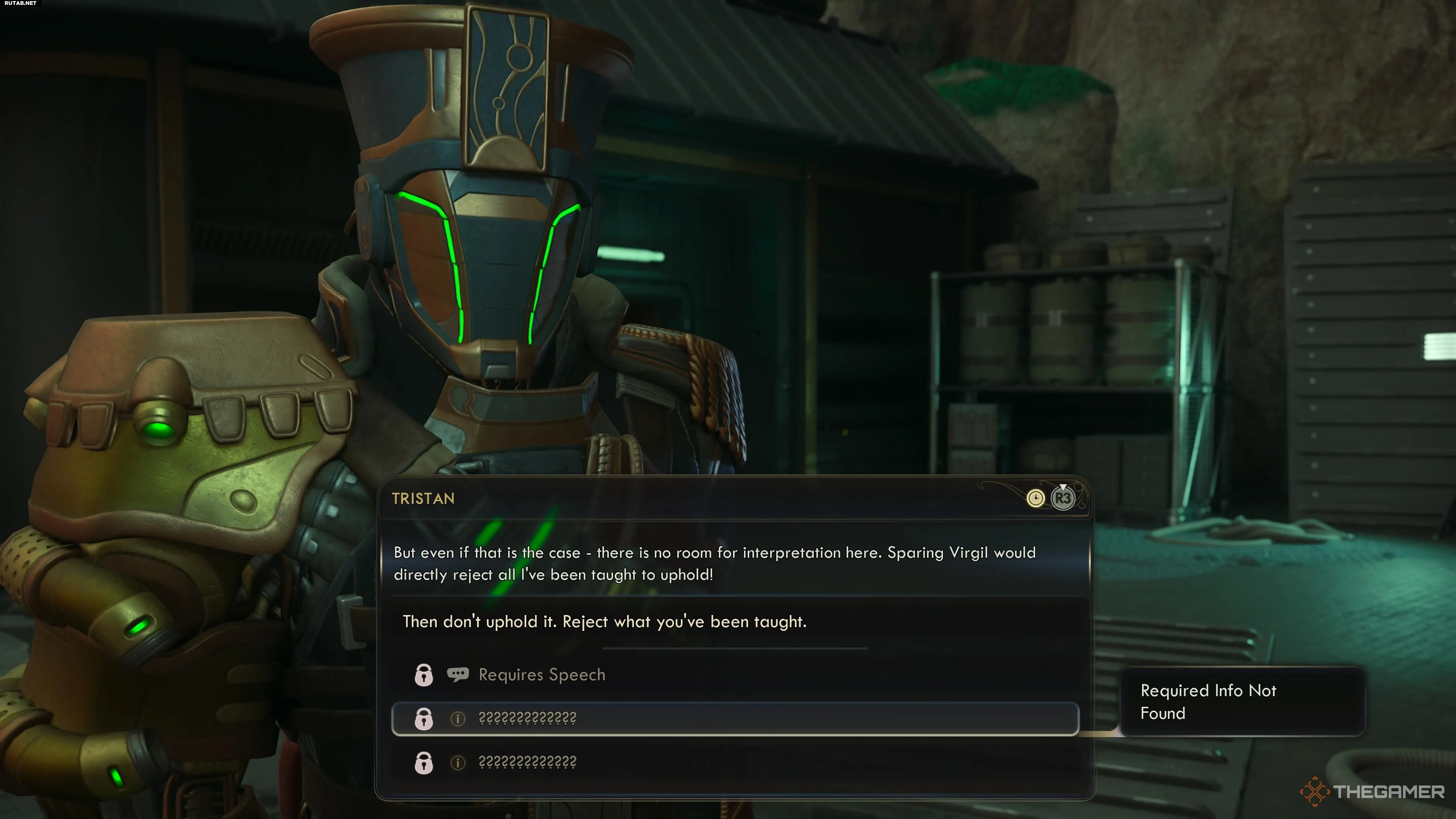 Первое и очевидное условие — завершить предыдущий квест Тристана «В поисках улики». В нём вы отправитесь в Пост обработки данных «Окулус», чтобы найти информацию о покойном наставнике Тристана, но обнаружите, что бывший кадет Протектората был нанят для уничтожения этих данных. Ваши действия в том квесте напрямую повлияют на возможные исходы этого, поэтому тщательно обдумывайте выбор.
