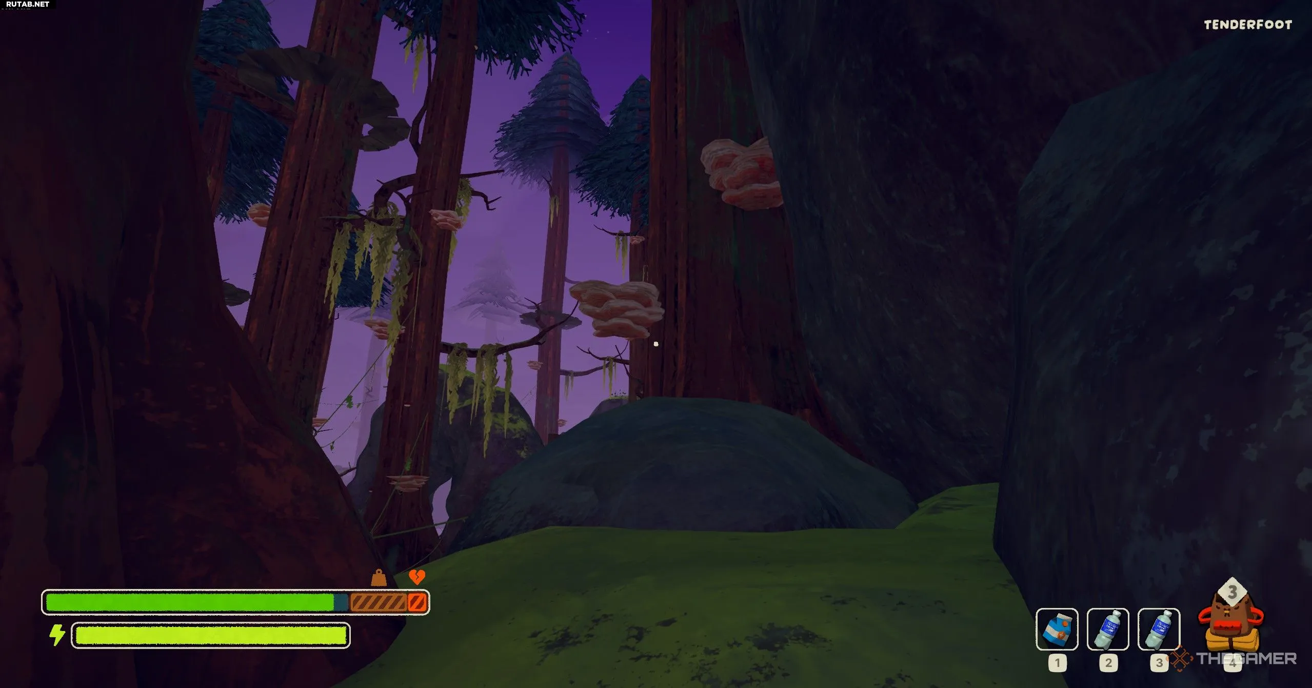 Первое серьезное препятствие — сильные порывы ветра, проносящиеся через биом. Эти порывы могут легко сбросить вас со скал, если вы не закрепились. Когда ветер усиливается, хватайтесь за ближайшее дерево, грибной выступ или стену горы, чтобы остаться на месте.