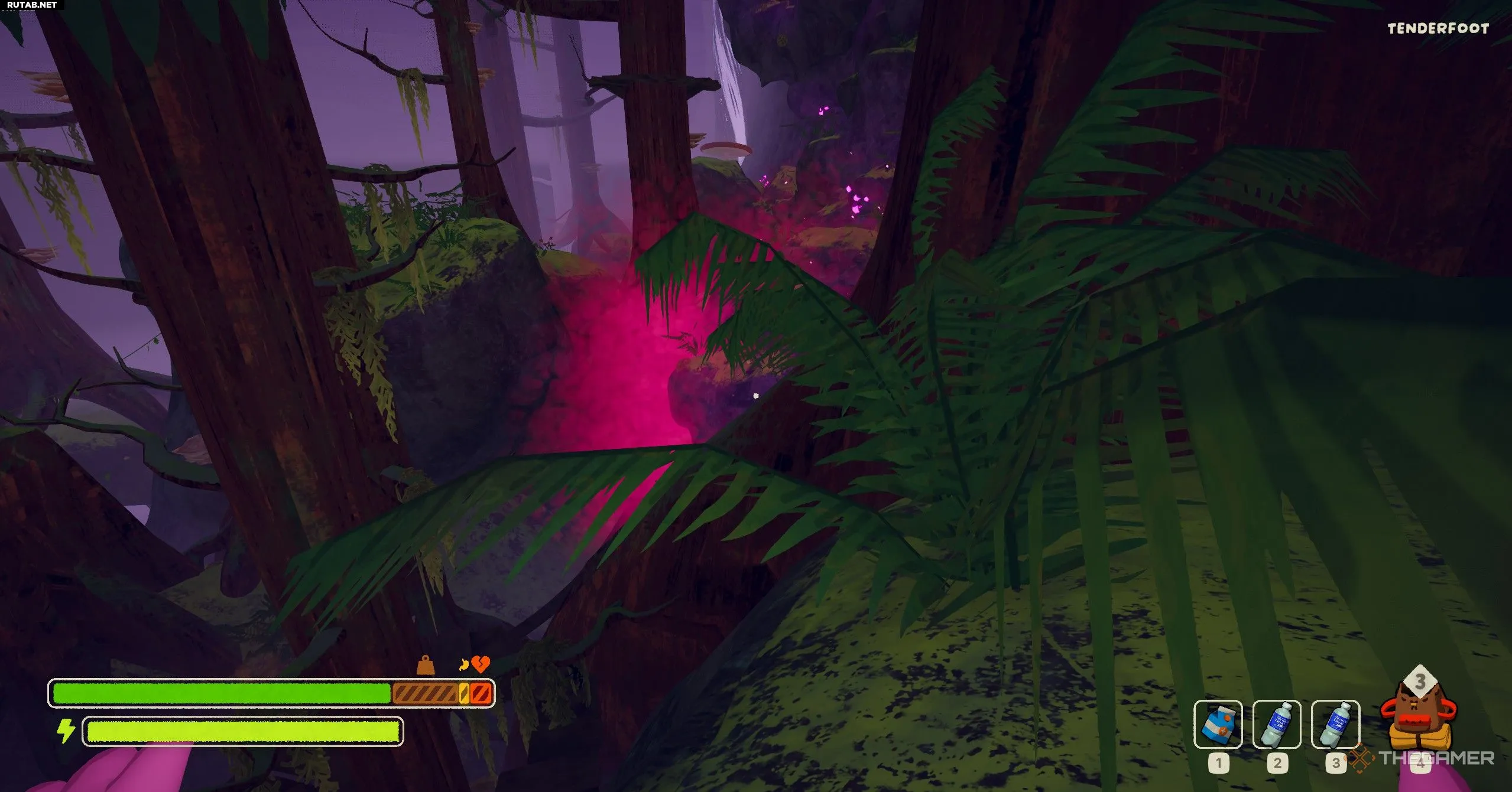 Продвигаясь по лесу, вы заметите розовые облака дыма, парящие в воздухе. Не пытайтесь пробежать через них. Этот токсичный туман отравит вас при контакте, быстро истощая здоровье.