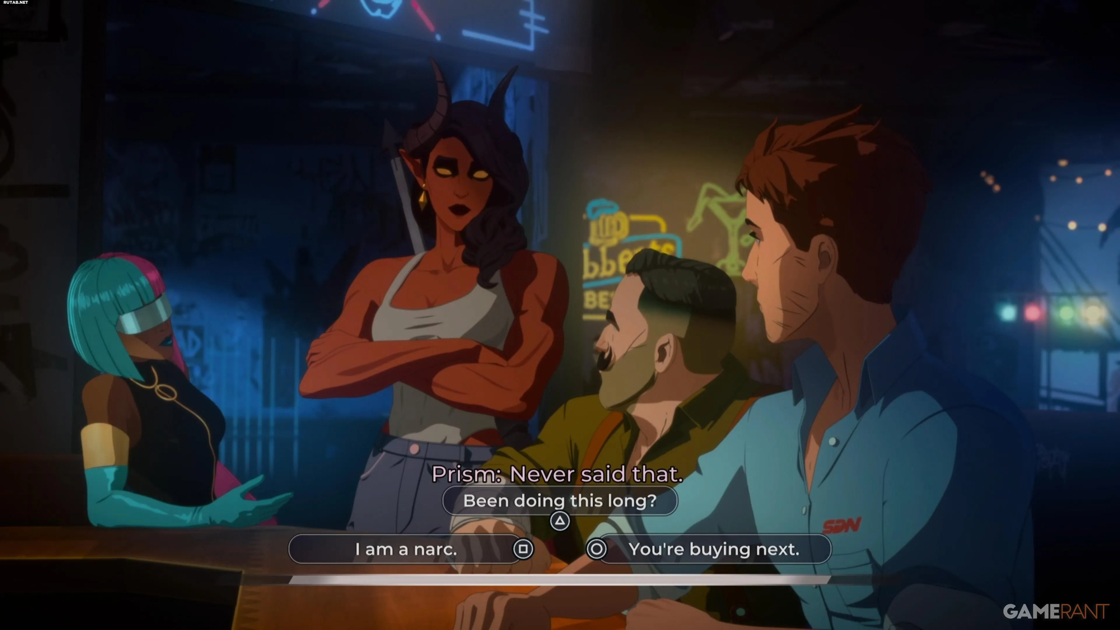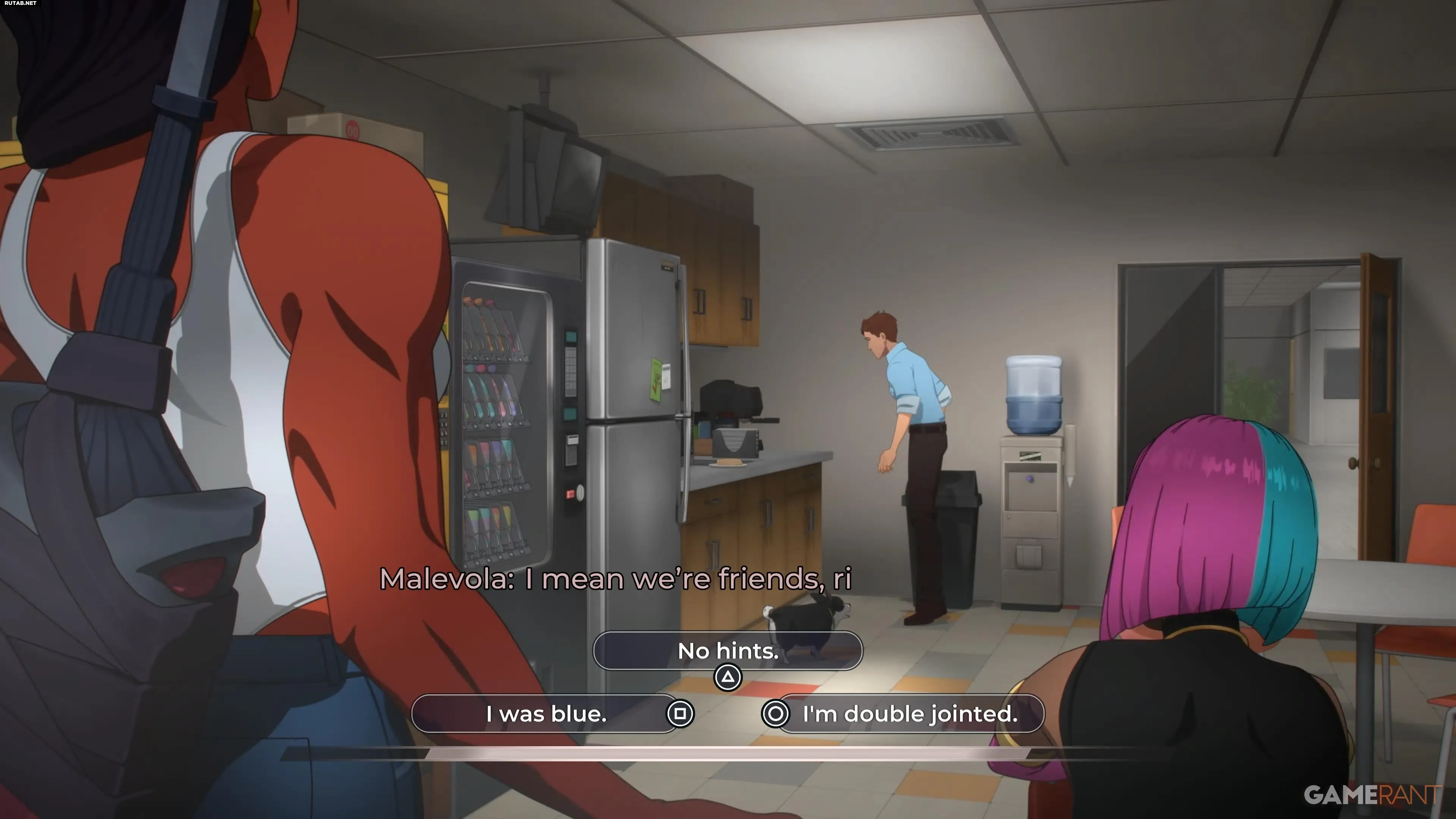 В комнате отдыха Мalevola и Prism задают вопросы о вашем прошлом. Ваш ответ будет запомнен: