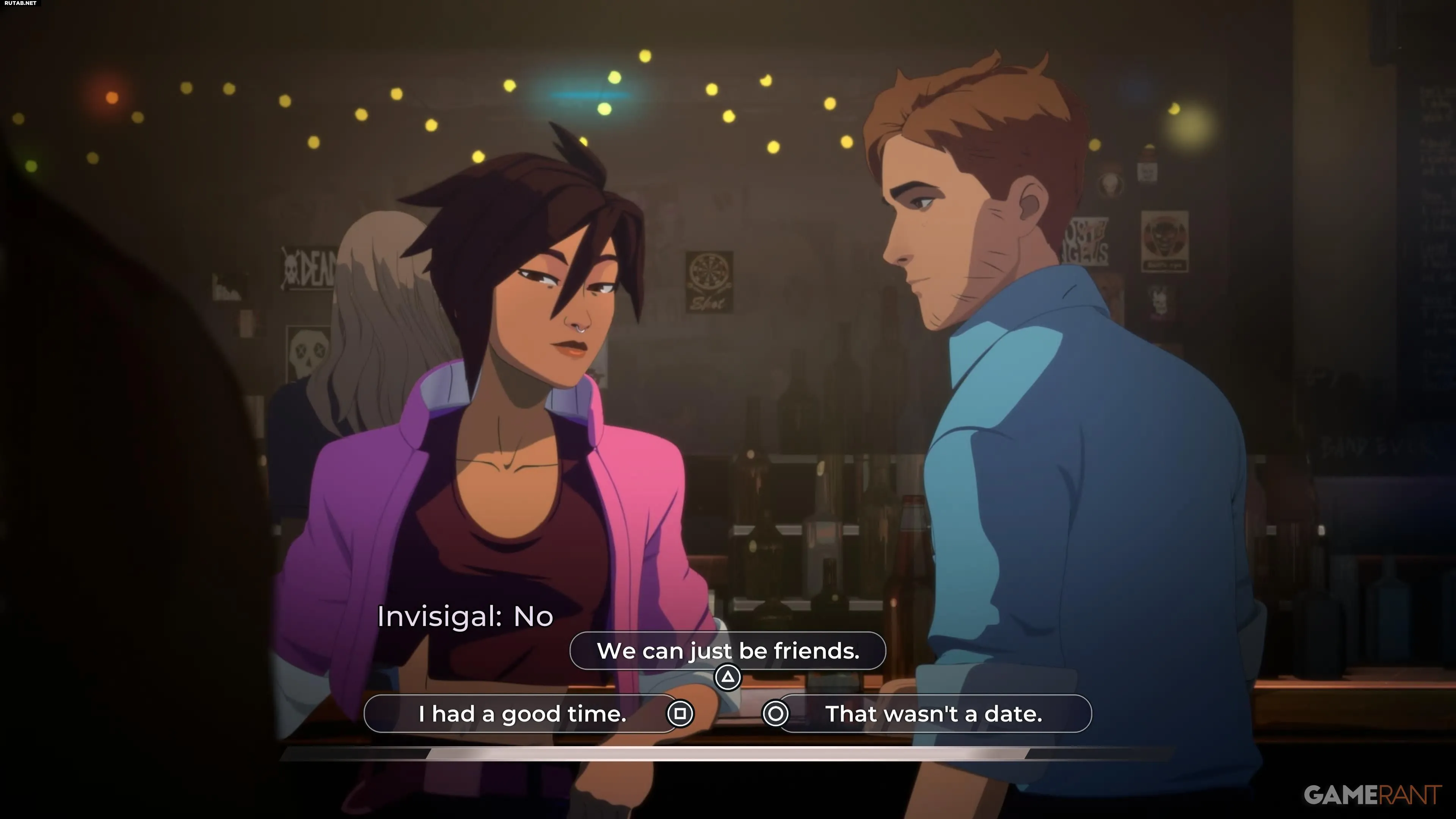 Если в предыдущем эпизоде вы выбрали поход в кино с Невидимкой, в баре «Сардина» вам предложат три варианта ответа: