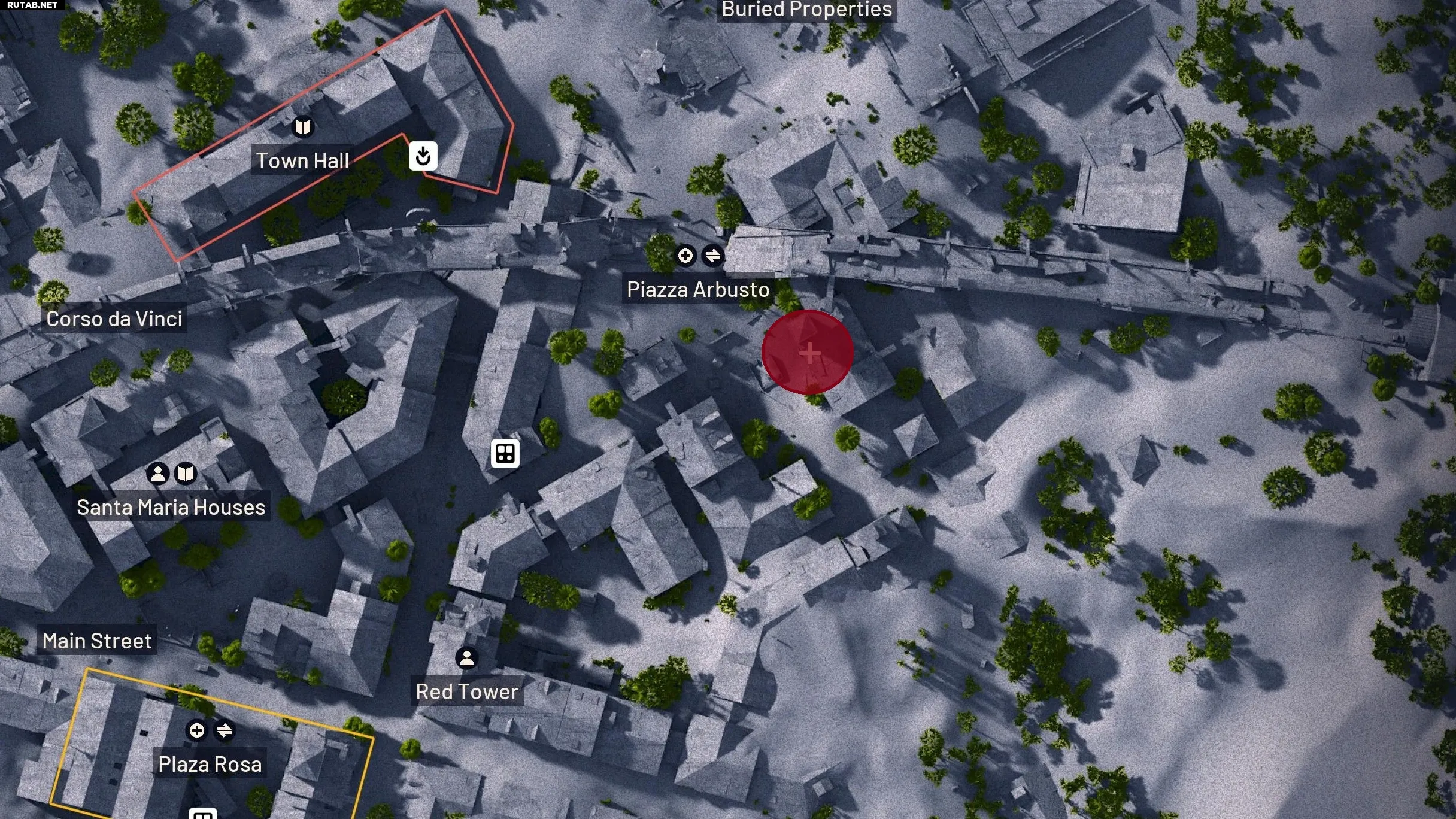 Цель указана как «любая аптека в Захороненном городе», но самый безопасный вариант находится в районе Пьяцца-Арбусто на юго-востоке карты. Здесь обычно меньше противников по сравнению с оживленными зонами.
