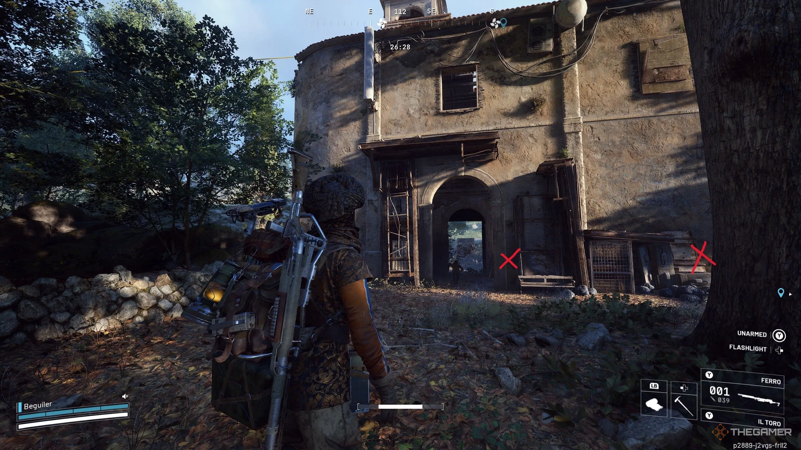 Будьте осторожны: в этой зоне активно патрулируют враги ARC. Во время тестирования мне постоянно приходилось сталкиваться с «Осами», «Шершнями» и «Стукачами», которые бродили прямо у церкви. Кроме того, внутри церкви может появиться турель — следите за синим светом.