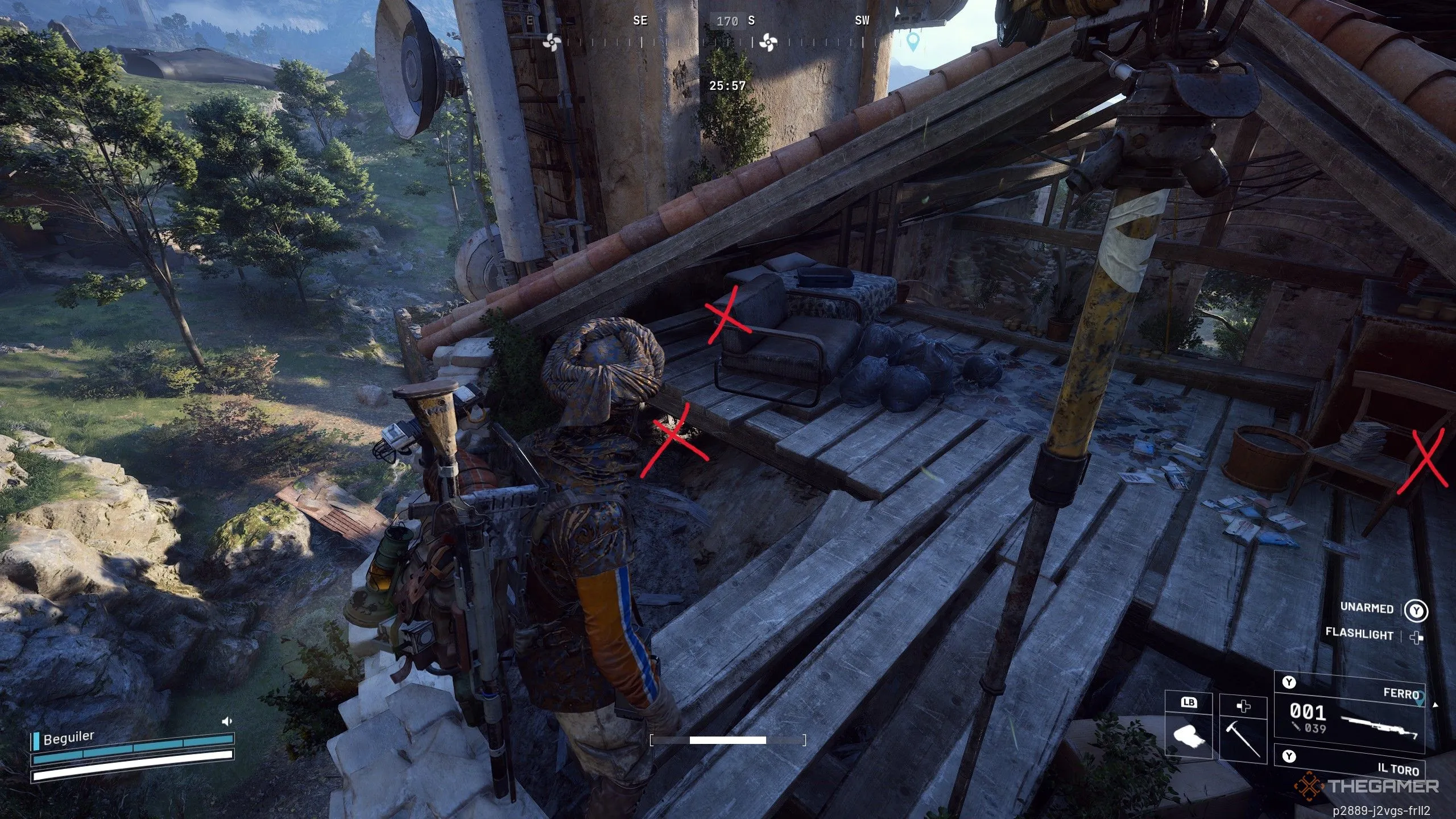 При использовании зиплайна посередине церкви будет находиться прямо на обломках слева. Чтобы добраться до неё, нужно спрыгнуть с зиплайна на полпути. (На изображении ниже кнопки 14-16).