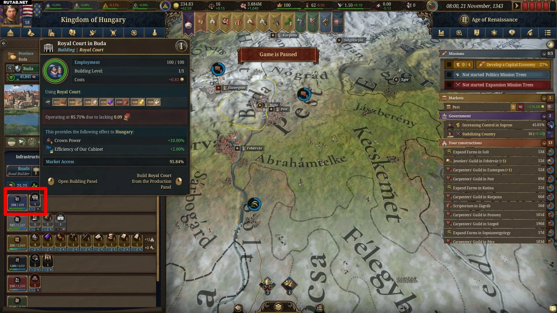 Чтобы увеличить содержание двора, перейдите на вкладку «Экономика», выберите меню «Баланс» и сдвиньте соответствующий ползунок вправо. Для быстрого достижения 100 легитимности рекомендуется установить ползунок на максимум.