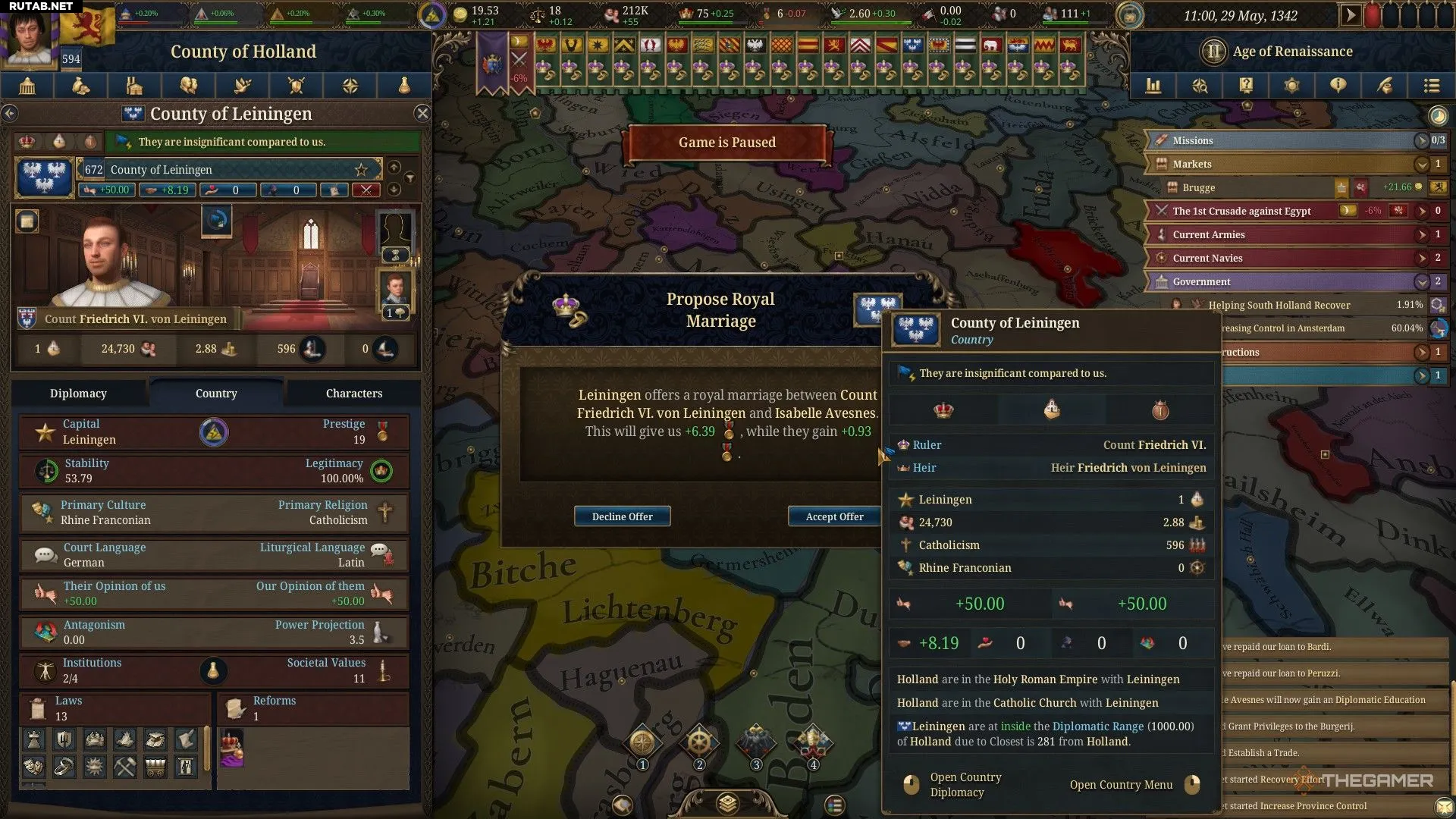 Не удивляйтесь, если страна, которую вы объявили соперником для выполнения миссий расширения, впоследствии откажется выдавать своих детей за ваших наследников.