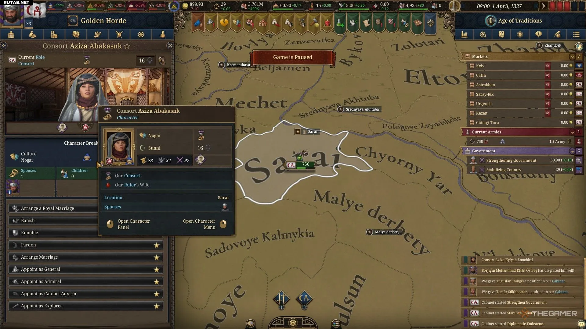 Крайне важно, чтобы у ваших правителей были наследники — это сохранит силу династии и удержит страну под контролем вашей семьи. Поэтому вам всегда следует следить за тем, чтобы у правителя был хотя бы один супруг. Некоторые страны позволяют правителю иметь более одного супруга, но вам нужно быть уверенным, что ваш правитель сможет однажды передать бразды правления своему ребёнку.