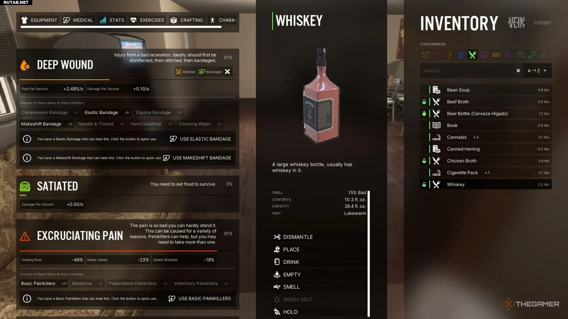 Травмы и болезни неизбежны в игре о вирусной вспышке, но есть немало способов отсрочить смерть. Если вас поцарапал зомби, используйте спирт для дезинфекции раны — это предотвратит её заражение и превращение в полноценную зомби-инфекцию или просто ухудшение состояния.