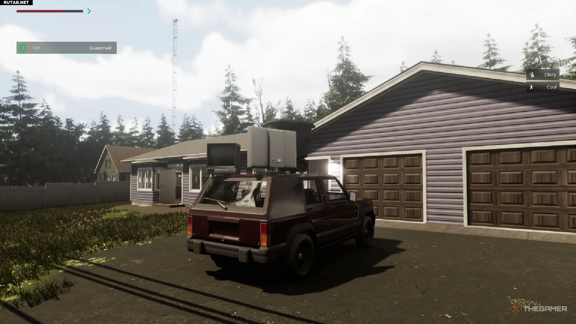 Передвижение на автомобиле в Vein значительно упрощает поиск предметов для улучшения базы. Многие крупные объекты не обязательно создавать самостоятельно — если предмет можно переместить, его можно доставить домой, разместив на крыше или в кузове машины.