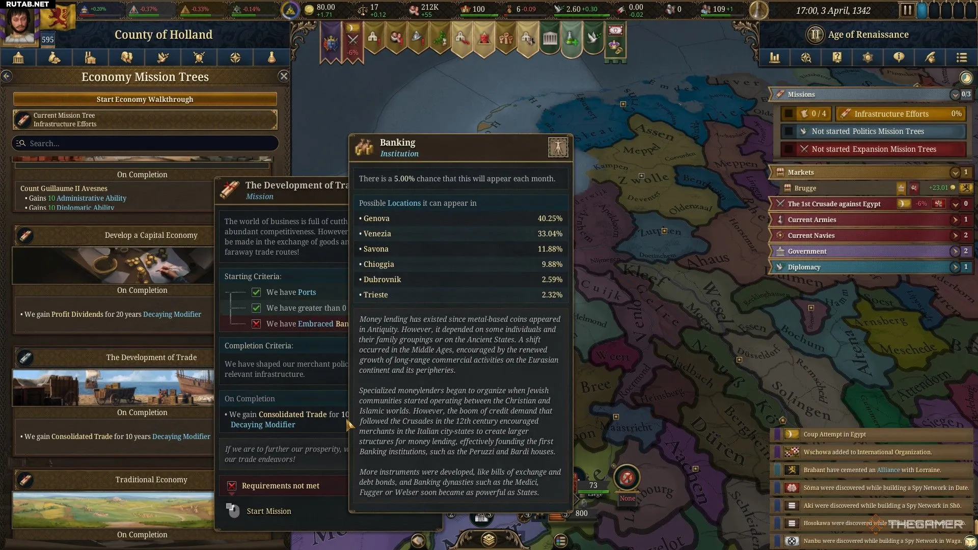 Если вы хотите сфокусироваться на управлении рынками и банковской системой для увеличения количества дукатов и короны власти — выбирайте экономическое дерево миссий. Оно состоит из четырёх основных направлений: