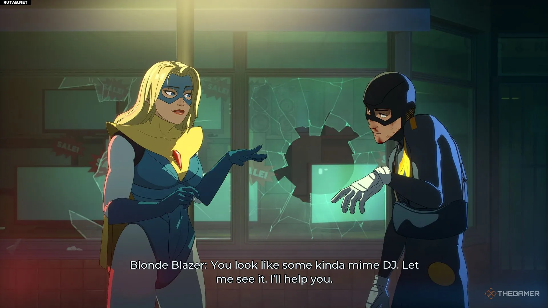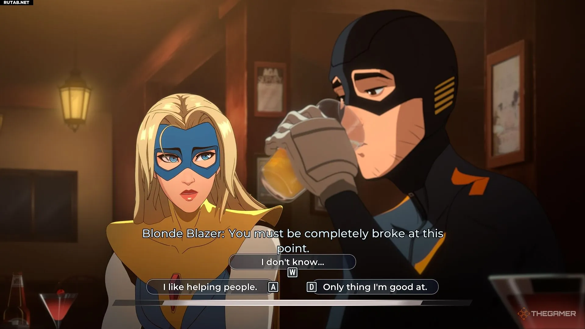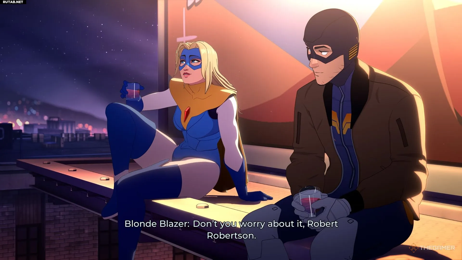 В баре с Блондинкой в Блейзере вы можете свободно общаться с ней, пока Флэмбэ, Купе и Панч-Ап не появятся, чтобы насмехаться над Мехаменом по поводу того, что значит быть настоящим героем. Поскольку Роберт остаётся один после того, как Блондинка ушла в туалет, вам придётся разбираться с ситуацией самостоятельно.