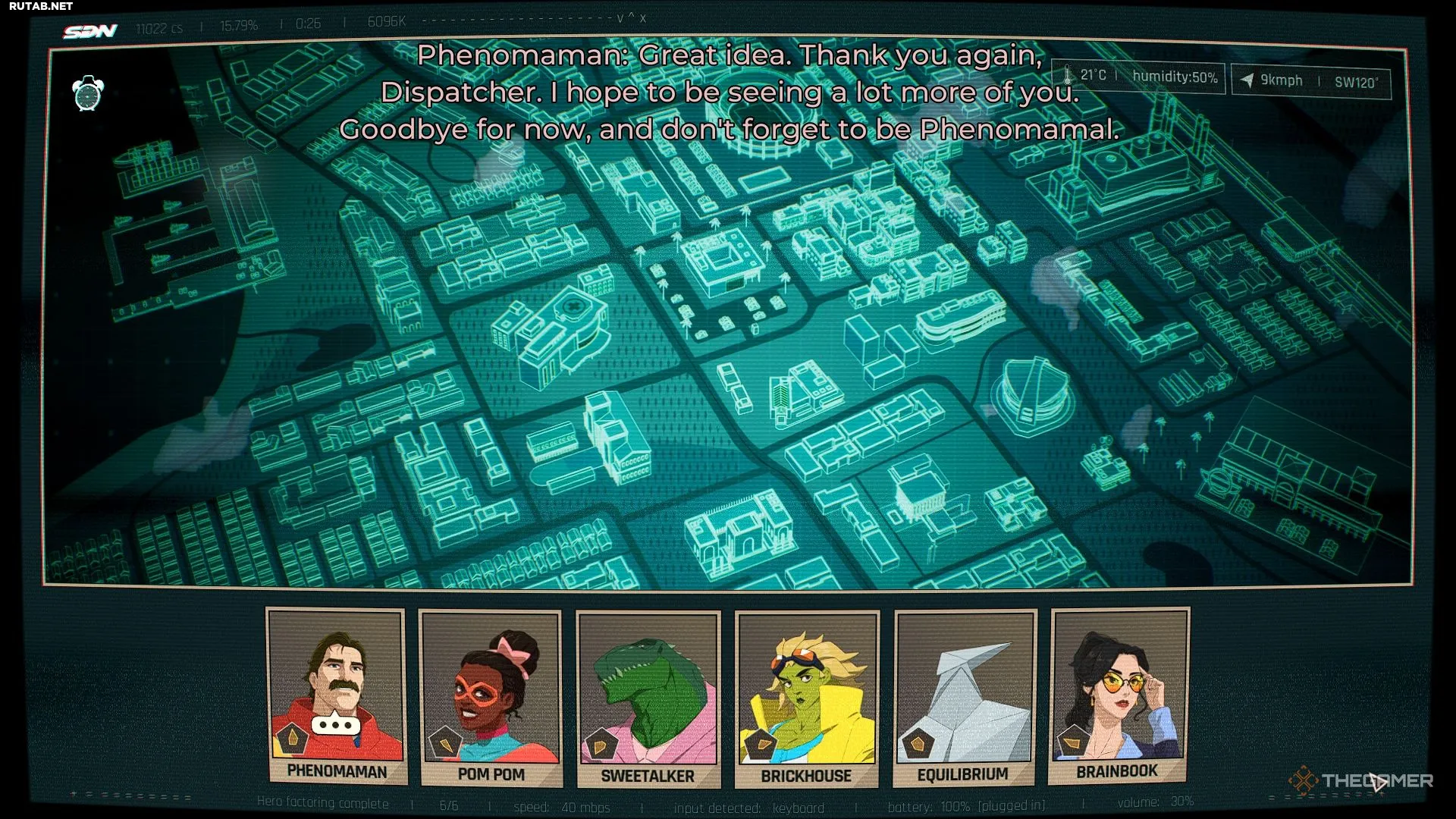 В начале игры Dispatch Роберту предстоит многому научиться, работая в Сети диспетчеров супергероев (СДС). От изучения уникальных способностей каждого героя до управления их отдыхом после заданий — всё это необходимо для защиты Лос-Анджелеса от злодеев любого масштаба.