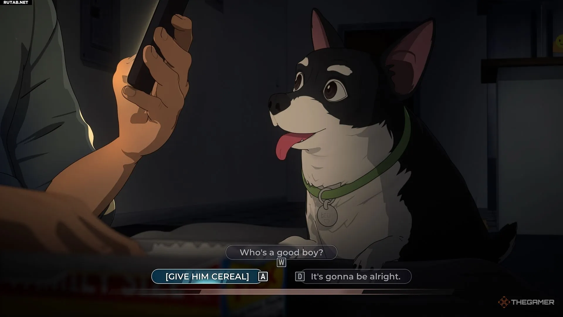 Вернувшись в квартиру, вы сможете пообщаться с очаровательным псом Роберта по кличке Биф. Этот упитанный пёс скучает по хозяину, и вы можете погладить его по голове или угостить хлопьями.