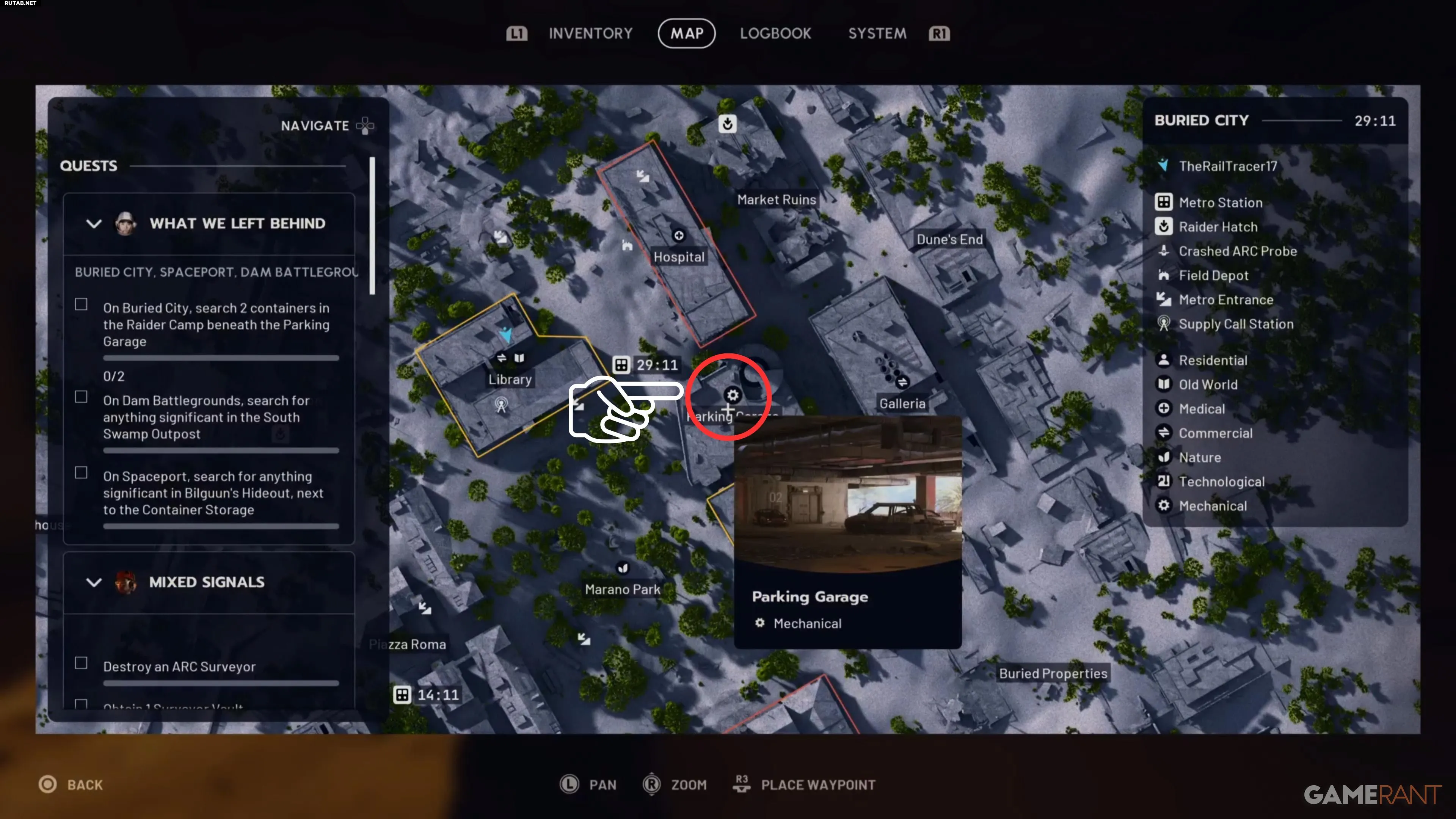 Начните с локации «Захороненный город». После появления на карте направляйтесь к Парковке, которая находится в центральной части карты, недалеко от Госпиталя. Добравшись до гаража, найдите лифт — у него должна быть опция «Взломать». Эта опция доступна на любом этаже, однако на первом этаже нет противников «Попсов» и «Огненных шаров», поэтому лучше спуститься туда.