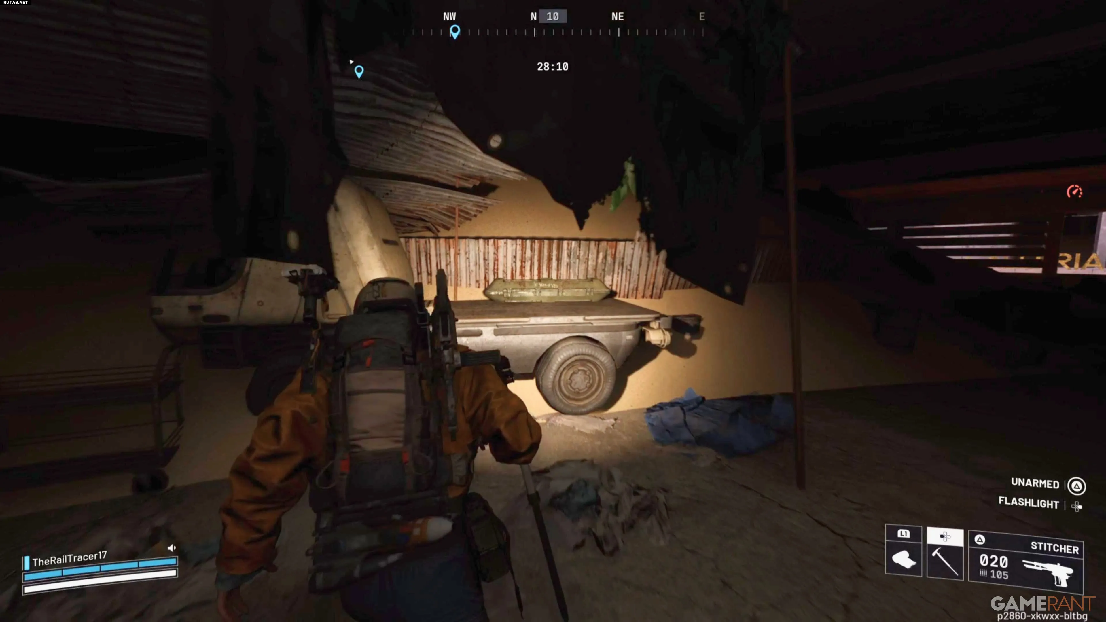 После взлома спуститесь по тросу, обязательно закрывая за собой все двери, чтобы замедлить возможных преследователей. Внизу вы найдёте Лагерь рейдеров, где нужно обыскать два контейнера для завершения цели. Здесь также может появиться ящик с оружием, из которого можно получить оружие эпического качества. После выполнения задачи выпрыгните из окна, поверните направо два раза и спуститесь на станцию метро для эвакуации.