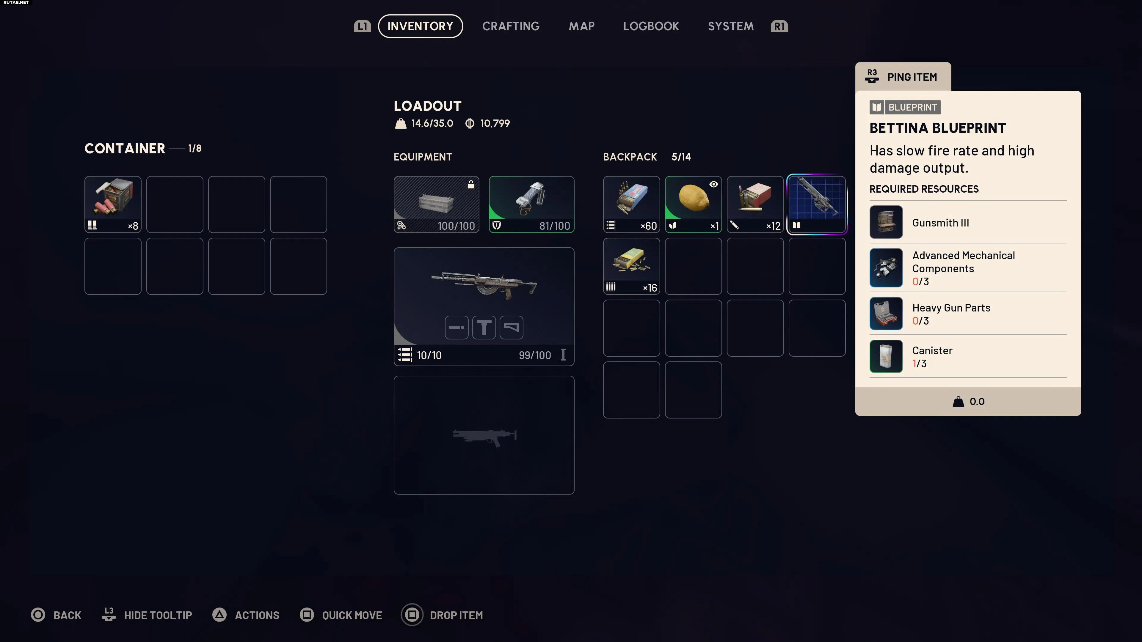 Для создания предмета по чертежу может понадобиться соответствующая станция в мастерской, возможно, даже улучшенная. Например, чертеж мощного оружия может требовать верстак оружейника 2-го уровня, а также необходимые компоненты.