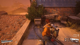Дождитесь промежутка и бегите обратно ко входу в турбину, но не спрыгивайте на землю. Поверните направо или налево и запрыгните на небольшие выступы по бокам турбины. Затем сразу развернитесь на 180 градусов и запрыгните на открытую металлическую платформу. Дождитесь, когда пламя перестанет блокировать путь, добегите до задней части и взломайте механизм, чтобы завершить головоломку и забрать награду.