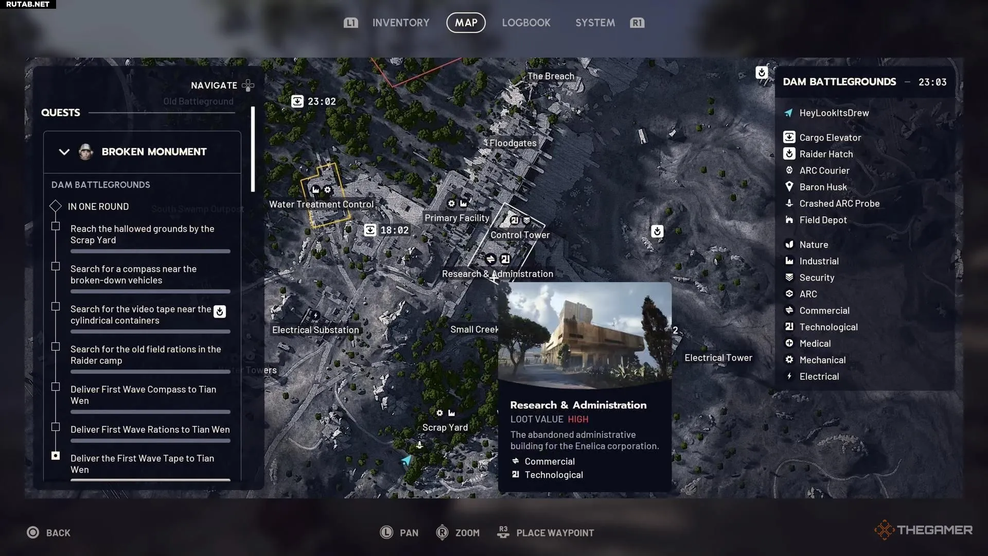 Ваша цель — Научно-административное здание, расположенное в южной части «Поля боя у дамбы», к северу от Свалка. Лучше всего войти с южной стороны — так вы быстрее попадете в нужное помещение. Учтите, что задание нужно выполнить за один рейд, поэтому будьте готовы довести дело до конца. В первые 15 минут рейда это здание часто заполнено другими Искателями.