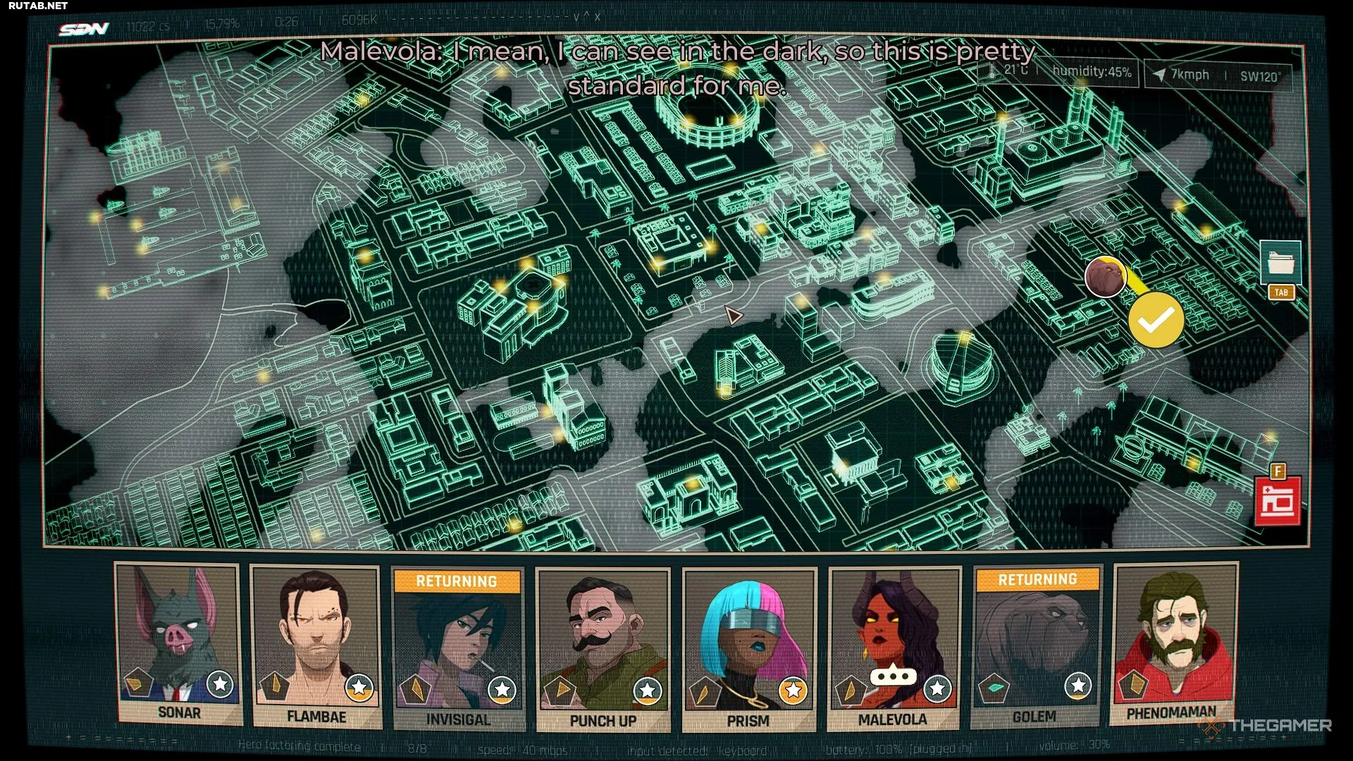 В комнате отдыха Призма и Малевола попросят подсказку о том, каким супергероем был Роберт раньше. Можете ответить как угодно — они всё равно не смогут догадаться сами. После комичной сцены вы встретитесь с Чейзом в лаборатории, чтобы поработать над костюмом Меха-Человека.
