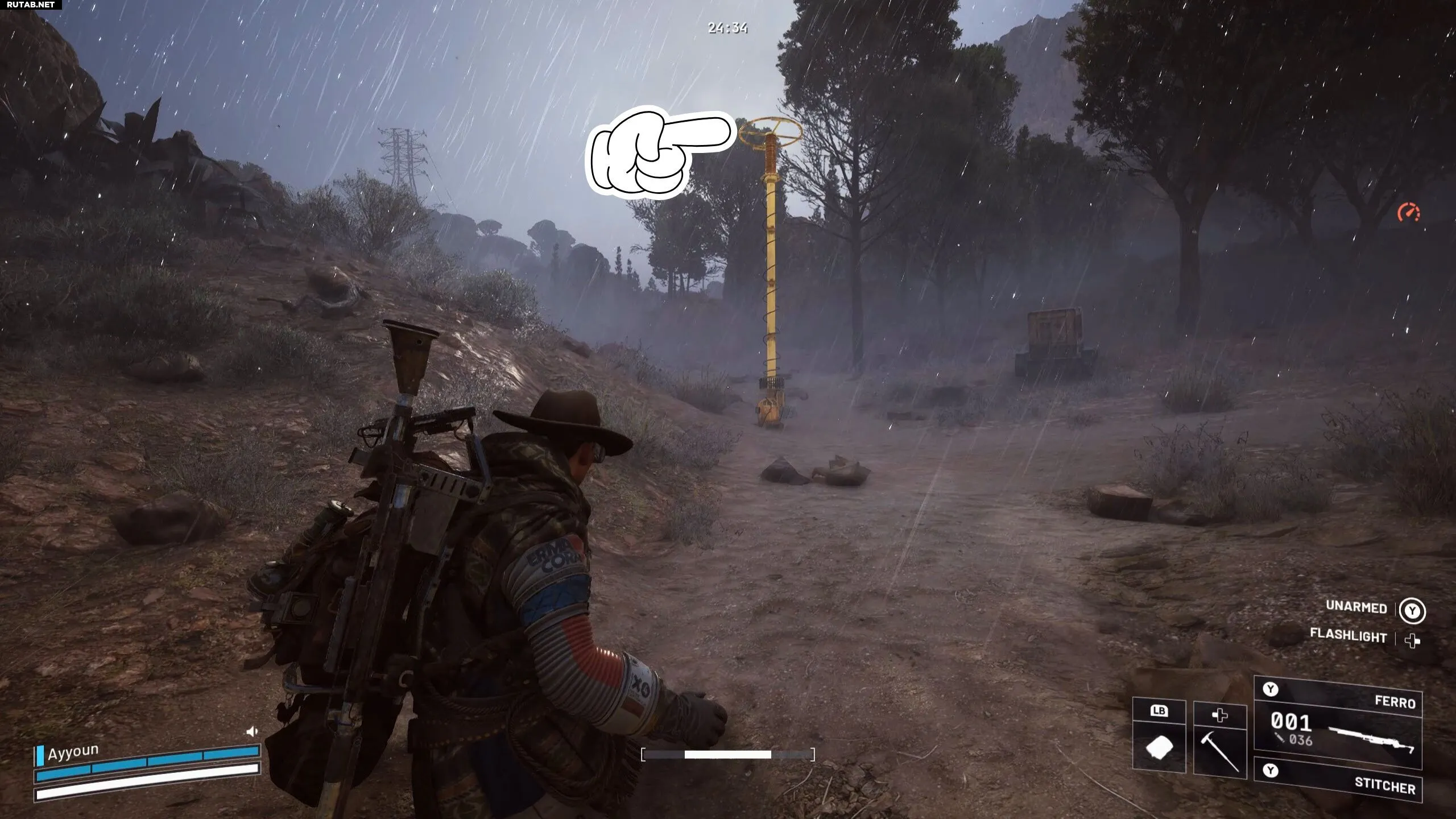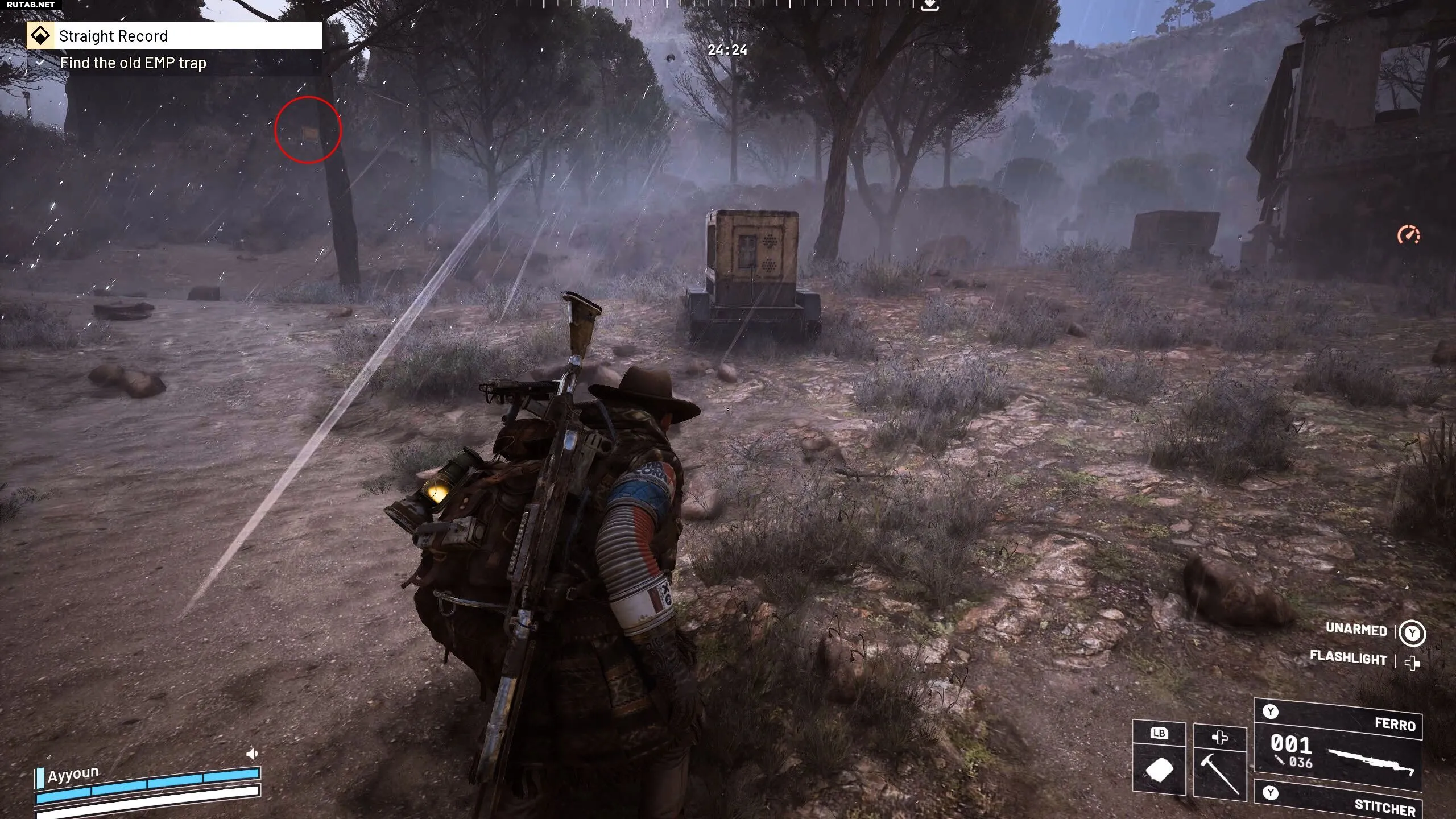 После прибытия на Победоносный хребет следуйте по обломкам на земле, чтобы найти электрический столб с желтым свечением. Это и есть старая ЭМИ-ловушка, с которой вам нужно взаимодействовать, чтобы отключить её.