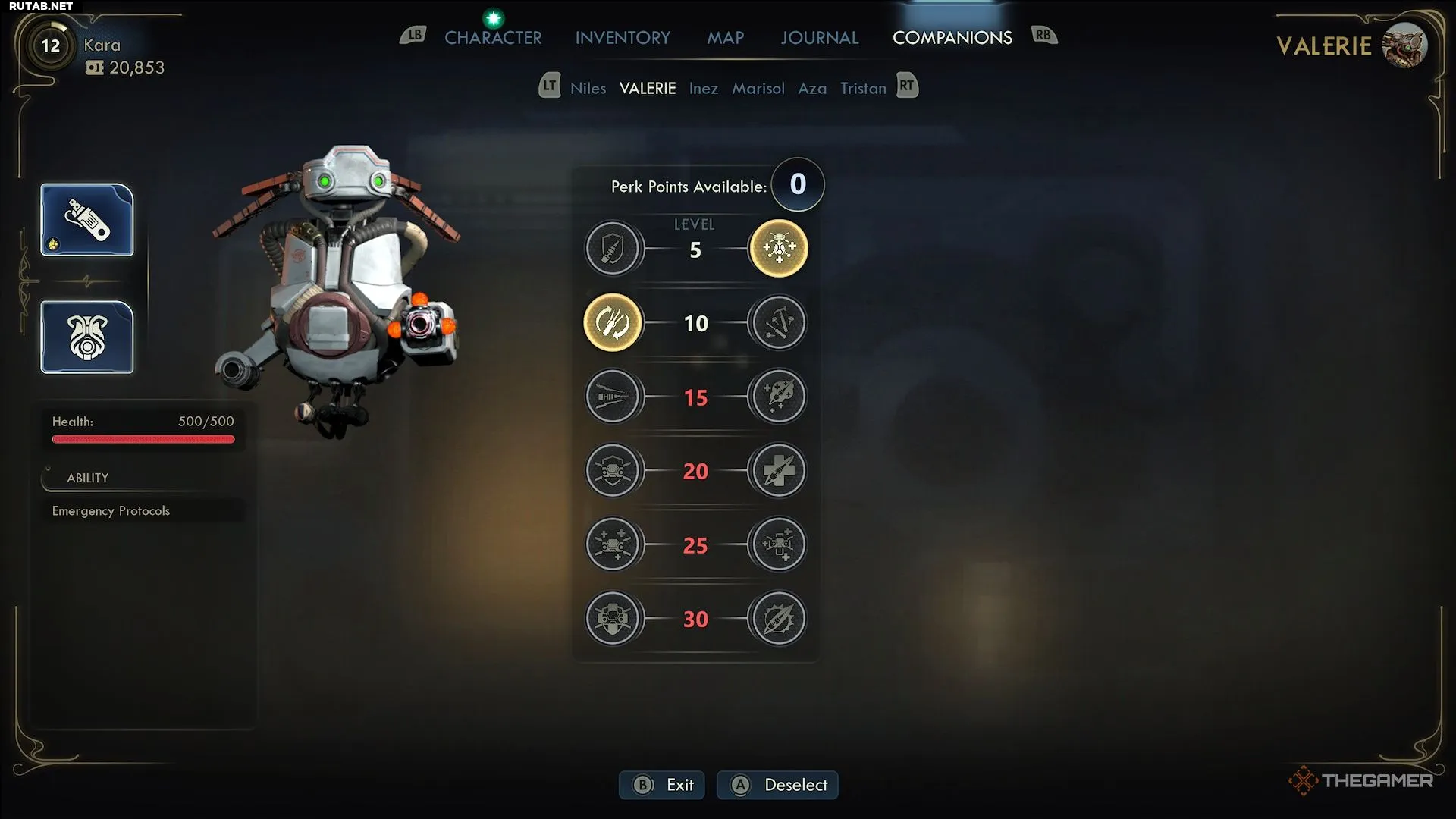 Как и Найлс, В.А.Л.Е.Р.И.Я — это ещё один спутник, которого не нужно специально разблокировать. Небольшой парящий робот уже является частью экипажа в начале игры и становится постоянным компаньоном после пролога.
