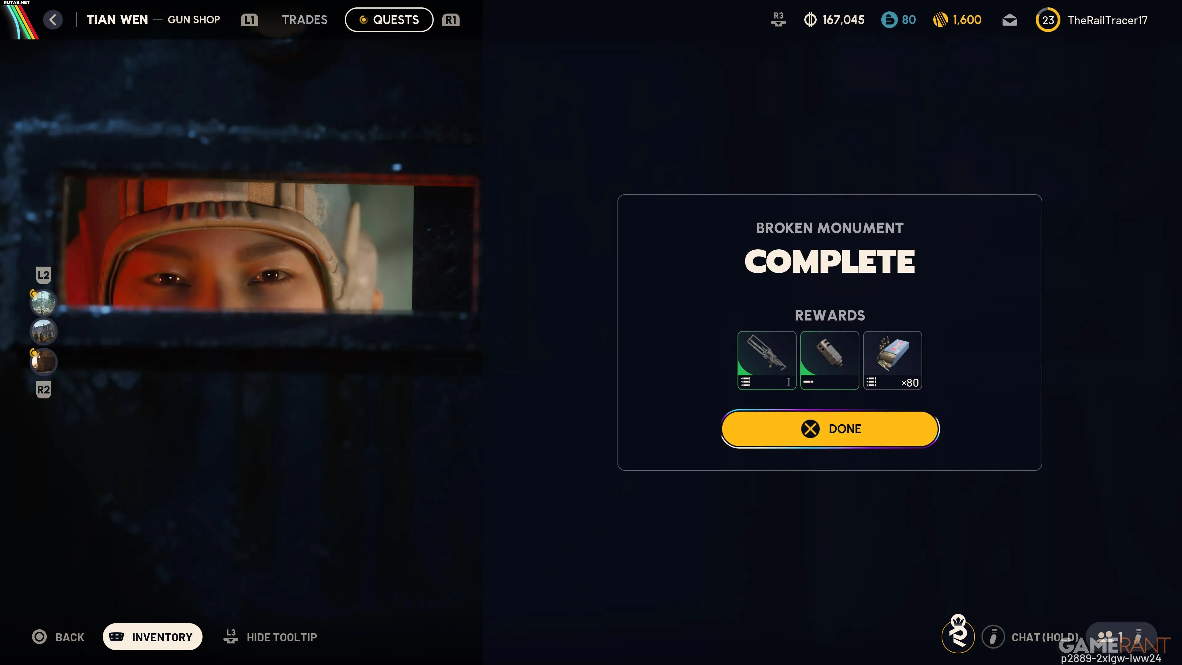 После возвращения в главное меню зайдите в раздел «Торговцы» и завершите квест, чтобы получить награды: