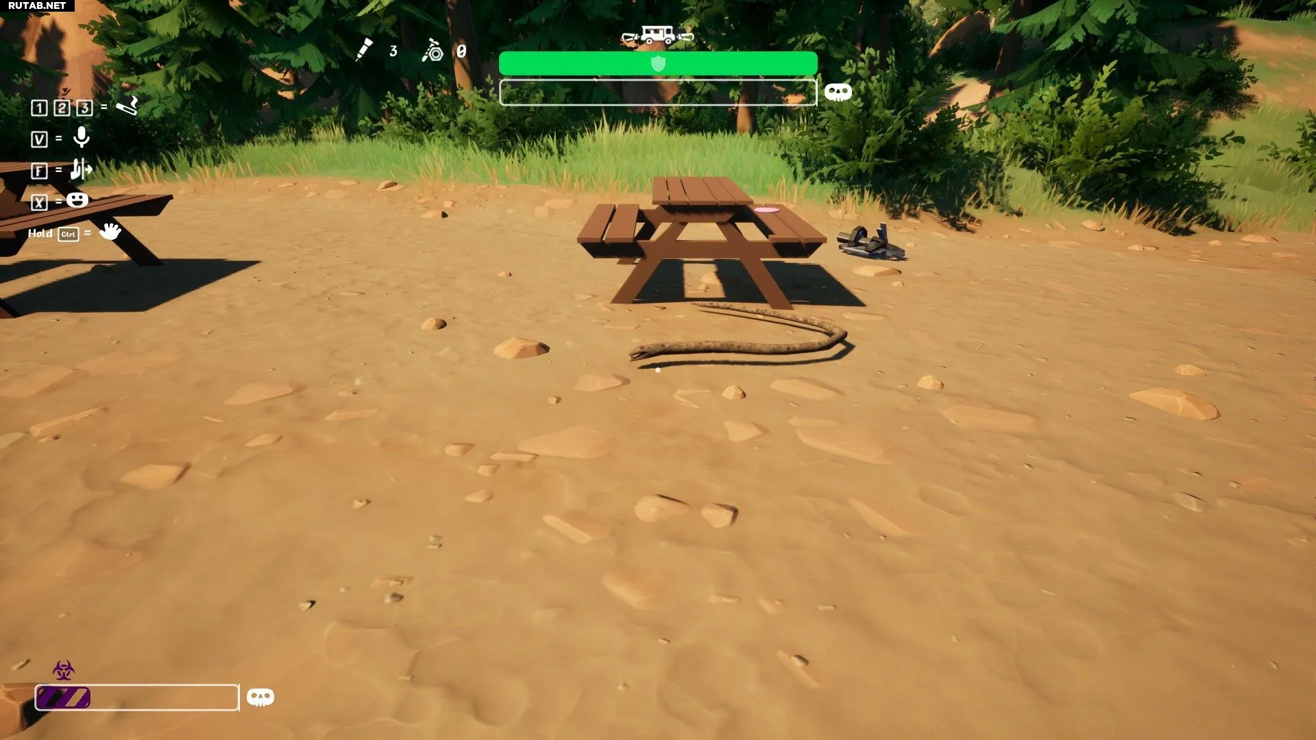 Змеи встречаются в начале игры, часто возле скамейки со спреем от медведей в первой зоне отдыха. Передвигайтесь осторожно в этих местах.