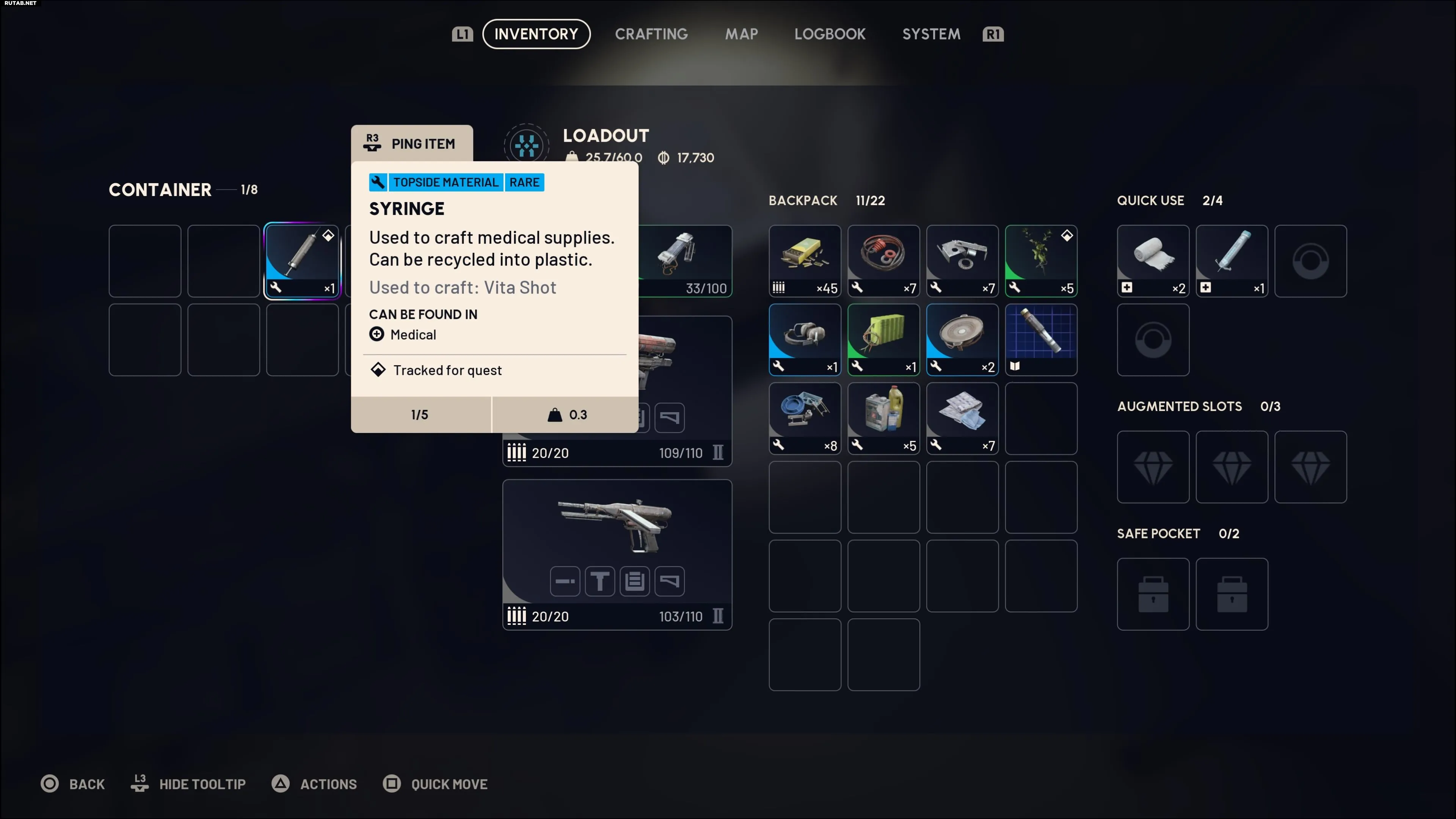 Как и Антисептик, Шприцы помечены как медицинские предметы и имеют редкость, поэтому поиск в медицинских зданиях со средним или высоким уровнем лута даст вам наибольшие шансы на их обнаружение. Помимо поиска отдельных предметов, игроки также могут получить несколько Шприцев, если найдут и переработают Ржавые аптечки, встречающиеся на пути.