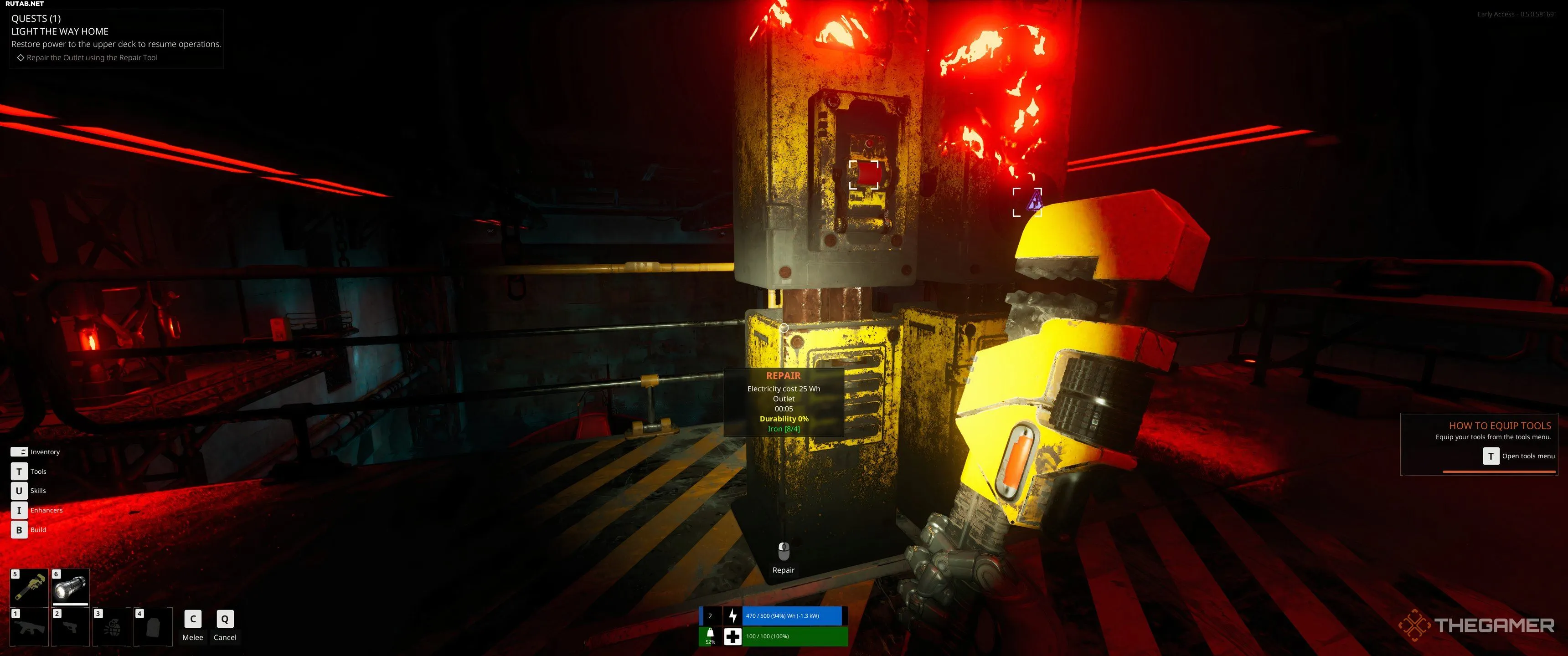 В начале игры вы обнаружите факел и инструмент для починки на панели инструментов. Соответствующие чертежи доступны на случай, если вам потребуется создать новые экземпляры.