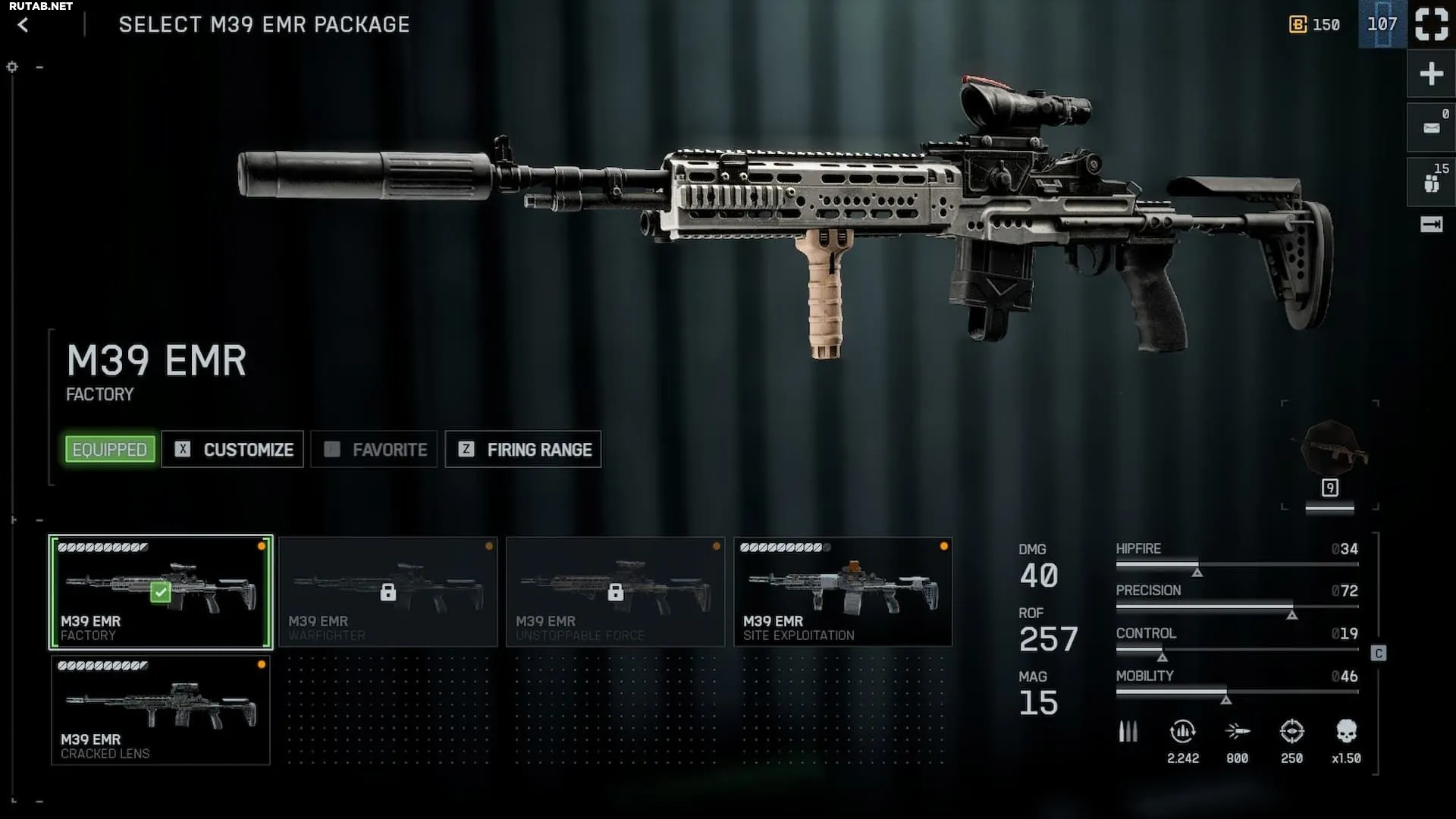 Выбор между M39 EMR и другими винтовками — дело личных предпочтений. Стандартный магазин на 20 патронов делает M39 более прощающей ошибки, чем SVDM и SVK, что позволяет опытному стрелку, точно попадающему в цель, добиться большего количества убийств.