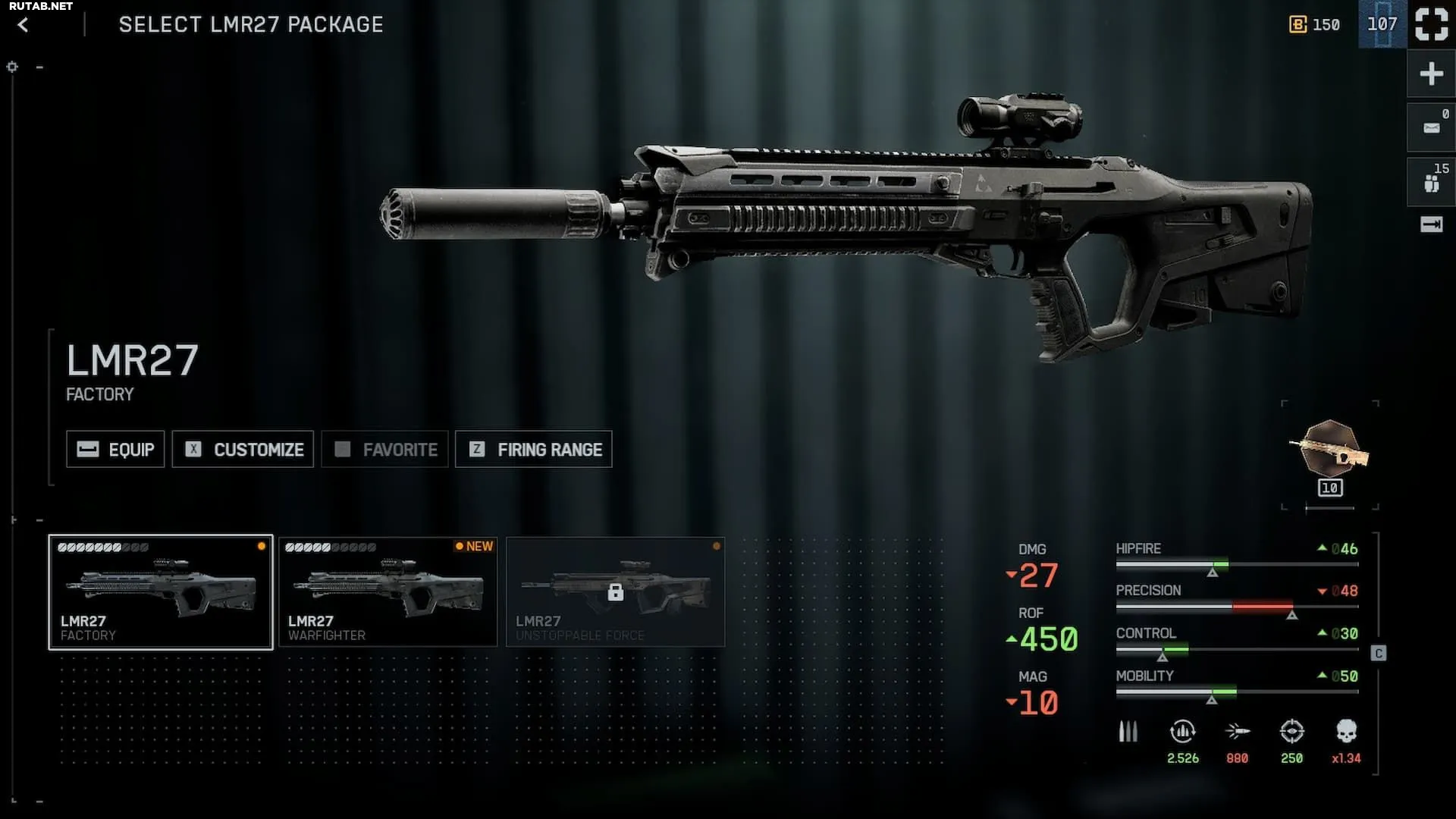 Хотя мы не рекомендуем использовать LMR27 для ближних дуэлей, её способность точно поражать цели в движении — несомненный плюс. Однако главная особенность LMR27 — предустановленные сошки. Несмотря на низкий урон, в развёрнутом положении сошек можно быстро стрелять, не беспокоясь об отдаче.