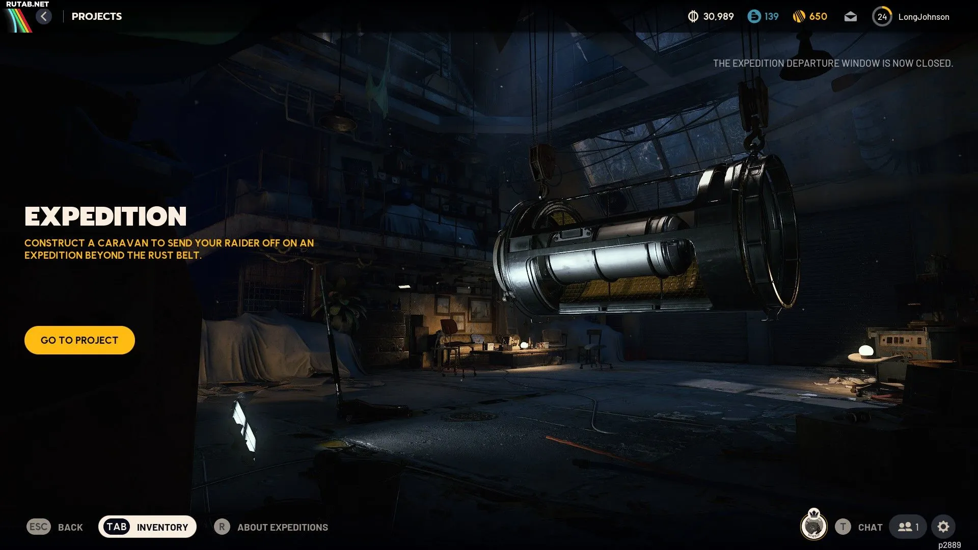 В этом меню игроки, достигшие 20-го уровня, смогут начать проект Экспедиции, который заключается в постройке Каравана для путешествия за пределы Ржавого Пояса — основной игровой зоны вокруг Сперанцы. Это путешествие в один конец: Рейдеры, отправившиеся в Экспедицию, никогда не вернутся (то есть персонаж будет потерян).
