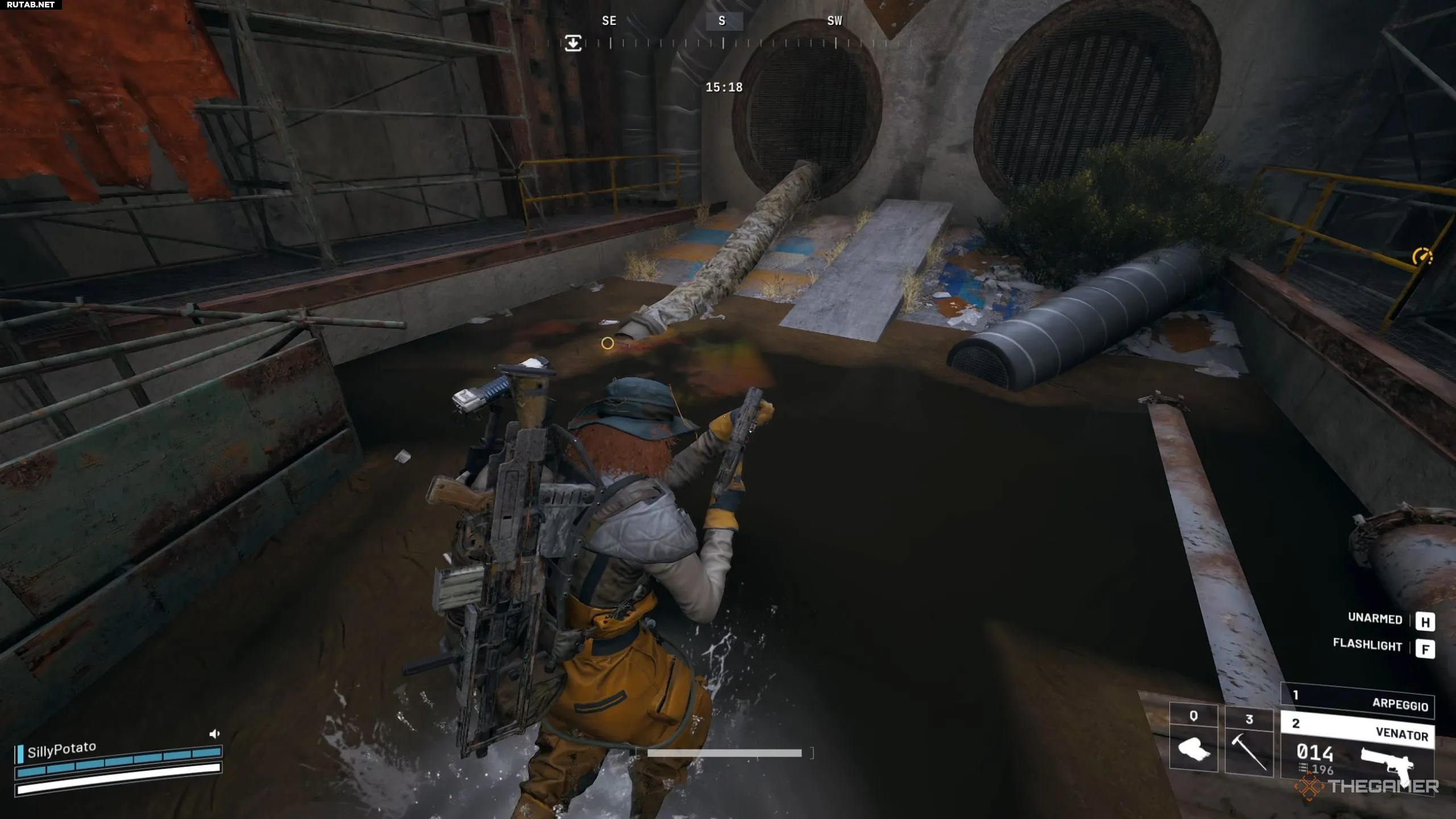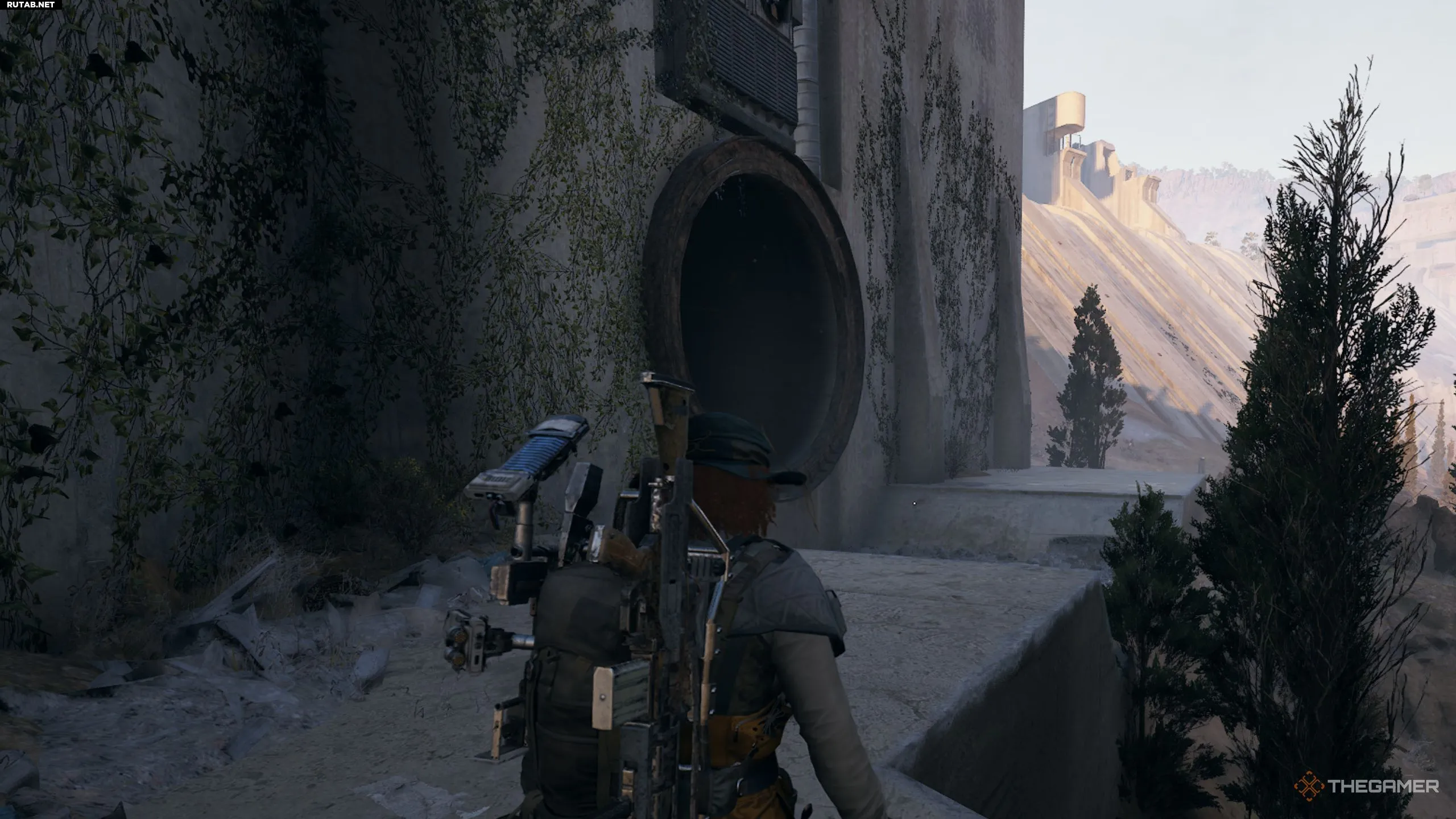 Вторая часть квеста потребует взять пробу воды в тоннеле доступа к паводковым водам. Для этого пройдите через весь тоннель, пока не окажетесь на открытой площадке с веревками, ведущими наверх. Однако вместо того, чтобы подниматься по ним, продолжите движение к противоположному концу этой площадки рядом с меньшим отверстием слева.