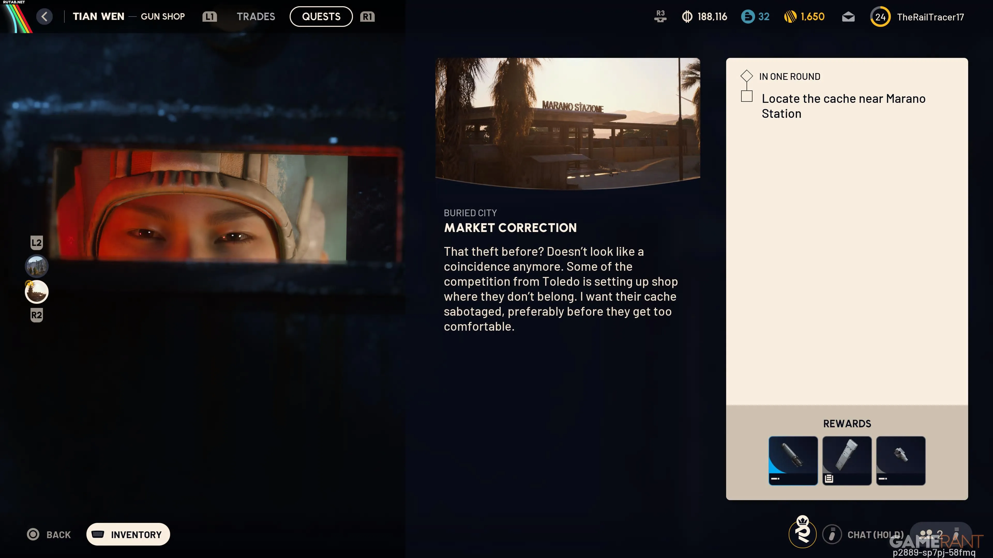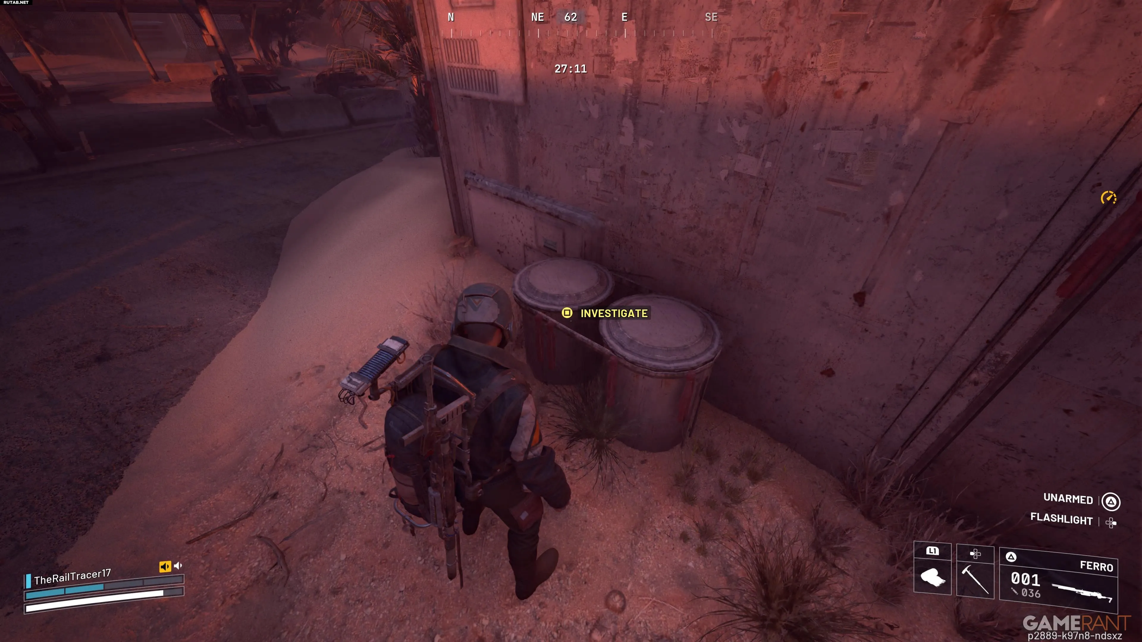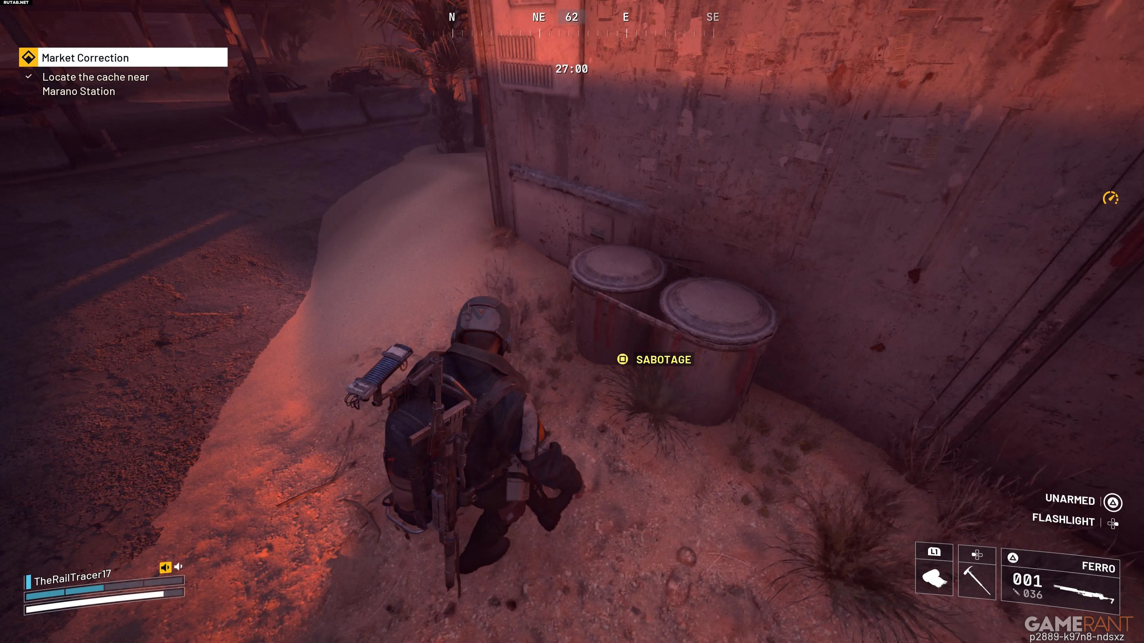 Добравшись до станции, посмотрите на восток и идите вперёд, пока не увидите два металлических бака рядом с небольшой лавкой. Издалека они похожи на закрытые мусорные баки, так что пропустить их трудно. Подойдите к ним и исследуйте тайник, чтобы выполнить первую часть задания. Затем вам нужно будет саботировать тайник, что вызовет небольшой взрыв и завершит квест.