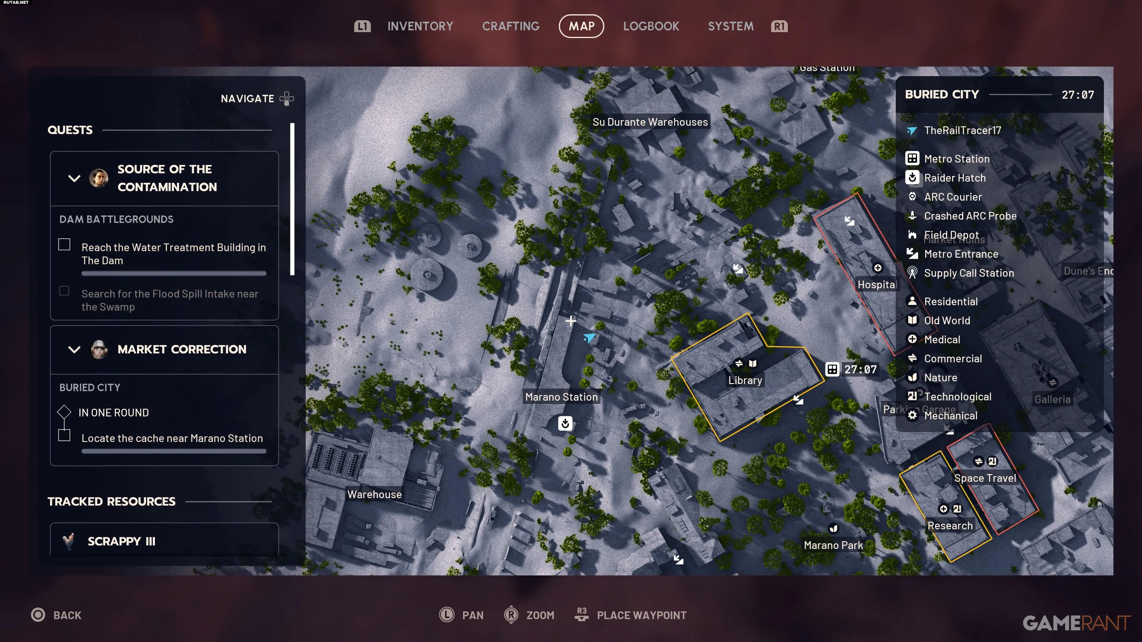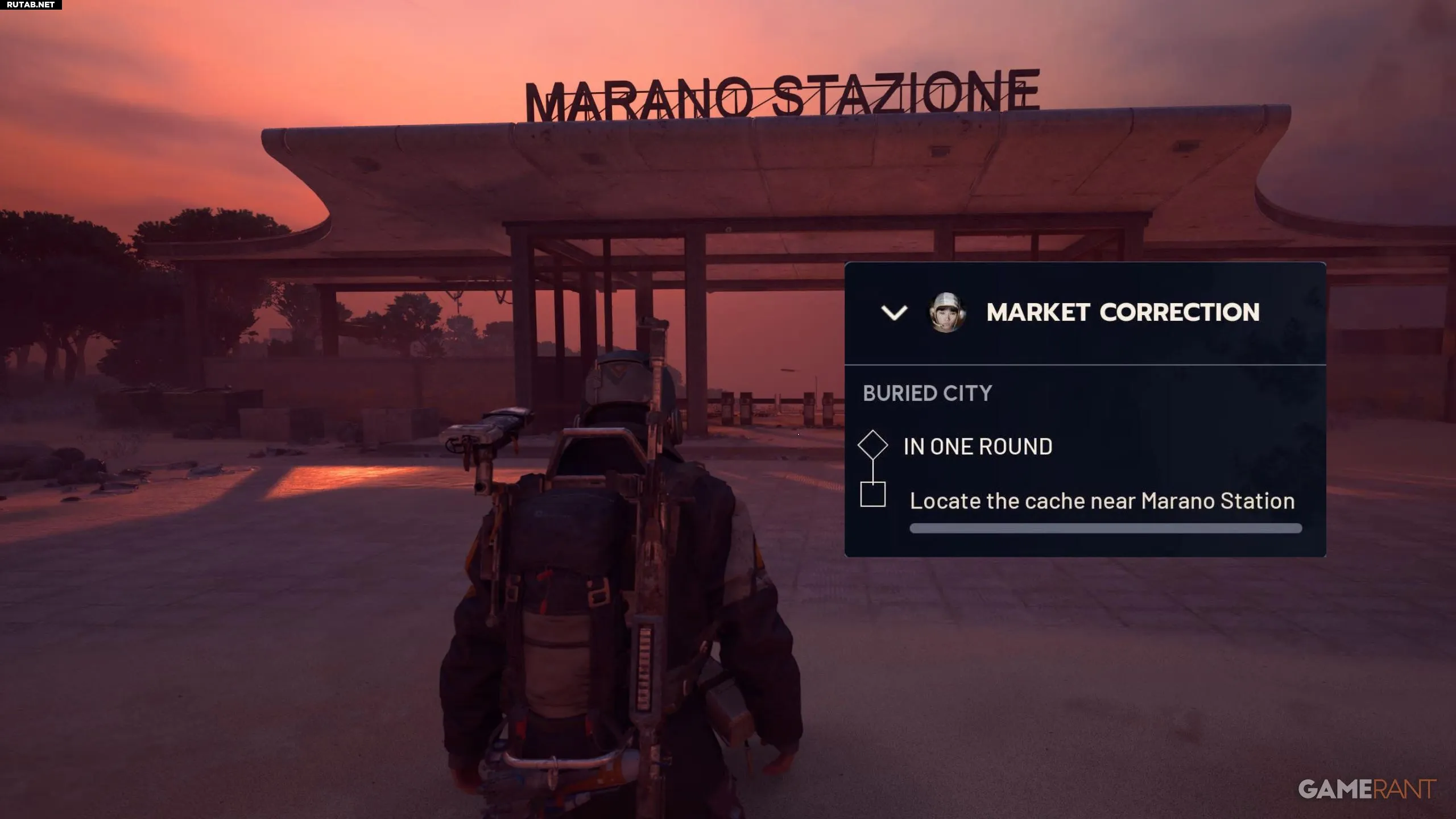 Получив задание из главного меню, загрузитесь на карту «Засыпанный город». Направляйтесь к станции Марано, которая находится на западе карты, рядом с Библиотекой. Будьте осторожны: вы можете встретить других Рейдеров в сети, и не все из них настроены дружелюбно. Кроме того, по открытым участкам карты может патрулировать Бомбардир или Бастион — избегайте их любой ценой, так как в одиночку справиться с ними очень сложно.