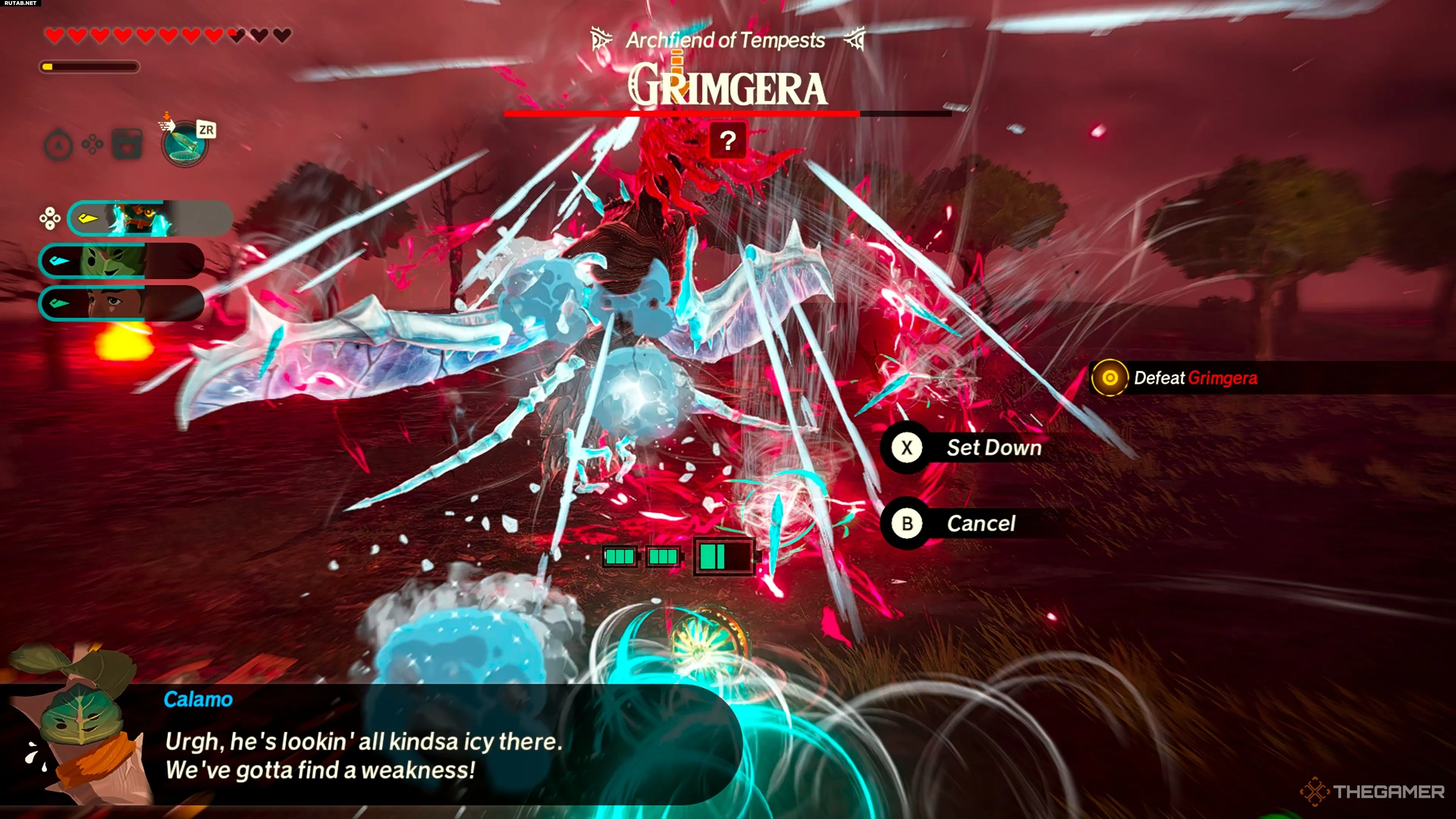 Поскольку Гримгера, Архидемон Вихрей, является первым крупным боссом в Hyrule Warriors: Age of Imprisonment, эта битва не будет самой сложной, но она проверит ваше умение пользоваться контратаками и находить слабые места противника. Тем не менее, с чётким планом действий вы сможете одолеть его за считанные минуты. Тем более что ваша команда состоит из Таинственного Конструкта, Каламо и Тифана — мощного трио, способного справиться с этим чудовищем!