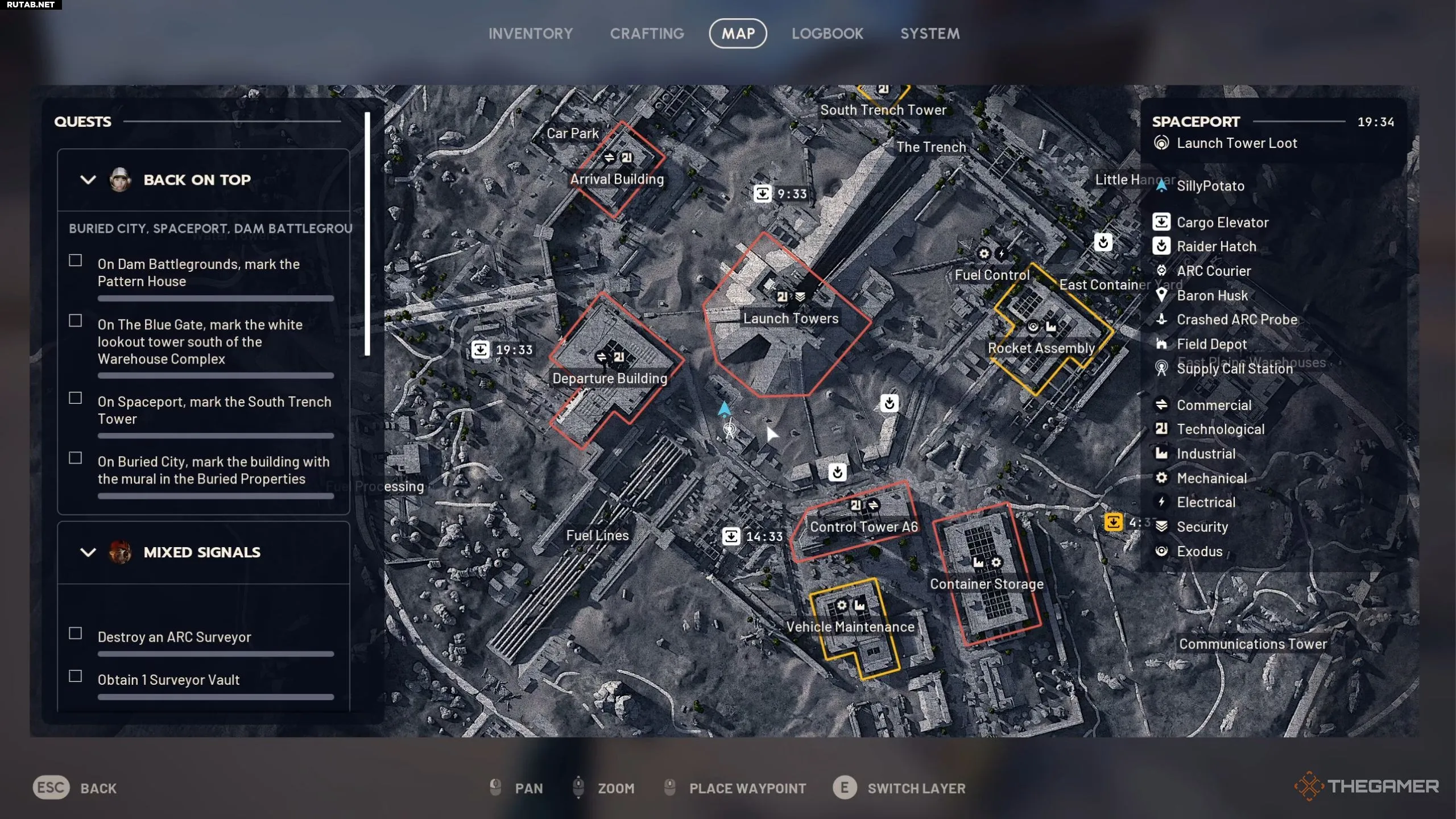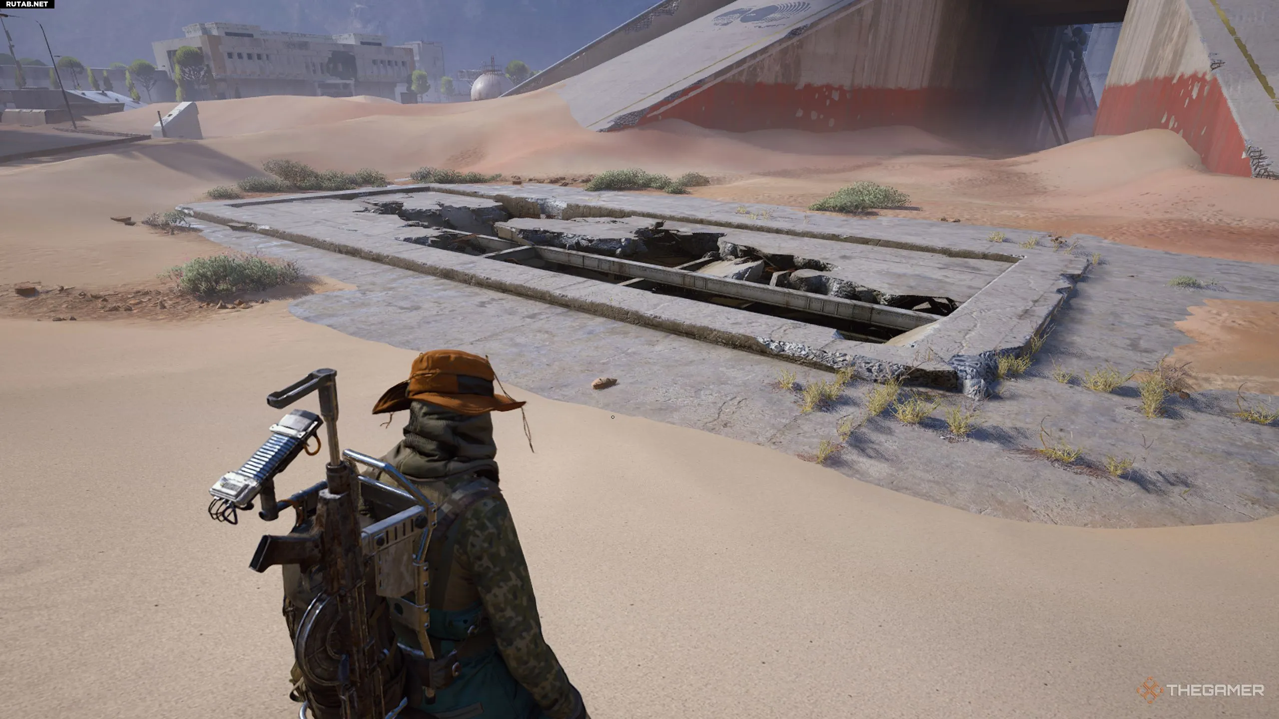 Вы можете попасть в эти туннели через их края или через многочисленные точки доступа вдоль пути. Однако если вы выполняете квест «Переключение поставки», лучший путь — к юго-западу от Пусковой башни, сразу за красной границей. Вам придется выйти на открытую местность, чтобы войти в туннели отсюда.