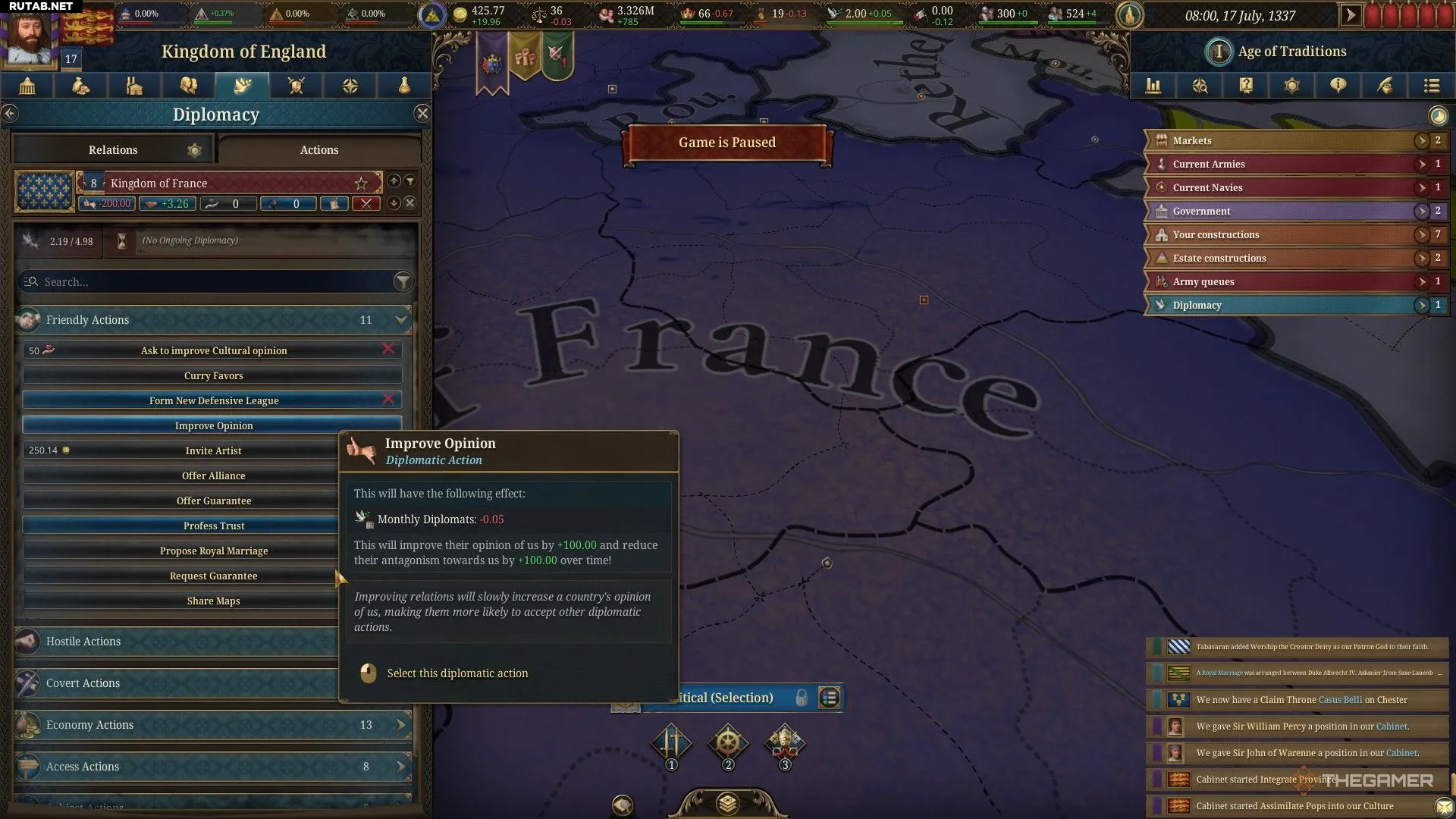 Лучший способ снизить показатель антагонизма в Europa Universalis 5 — отправлять дипломатов в другие страны, которые воспринимают вас как угрозу на мировой арене. Эти дипломаты будут работать от вашего имени в этих локациях, улучшая общее восприятие вашего государства, тем самым повышая уровень отношений и снижая антагонизм в конкретной стране.