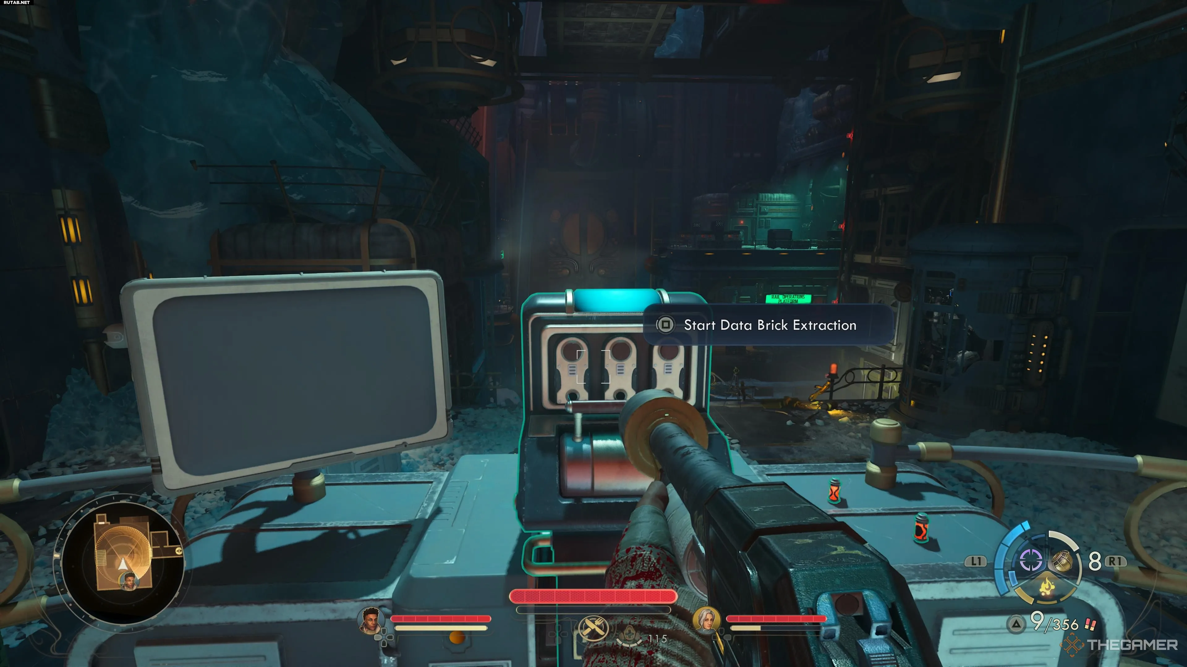 После входа вы можете найти дверь справа, внутри которой находится учёный. У неё же есть консоль, с которой можно взаимодействовать — это позволяет заморозить всех врагов в зоне, хотя это и не обязательно. Из того же коридора поднимитесь на лифте, затем пройдите в комнату прямо впереди к следующему лифту. Уберите врагов здесь и начните извлечение блока данных с помощью рычага.