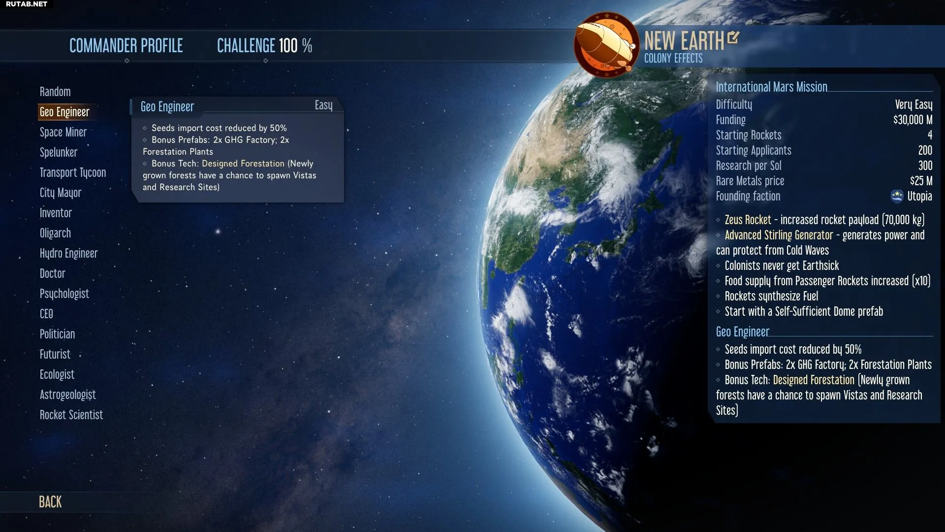 Это достойный профиль для новичков, увеличивающий объём финансирования в начале миссии. Он также значительно снижает стоимость строительства благодаря эксклюзивной технологии Марс Нуво.