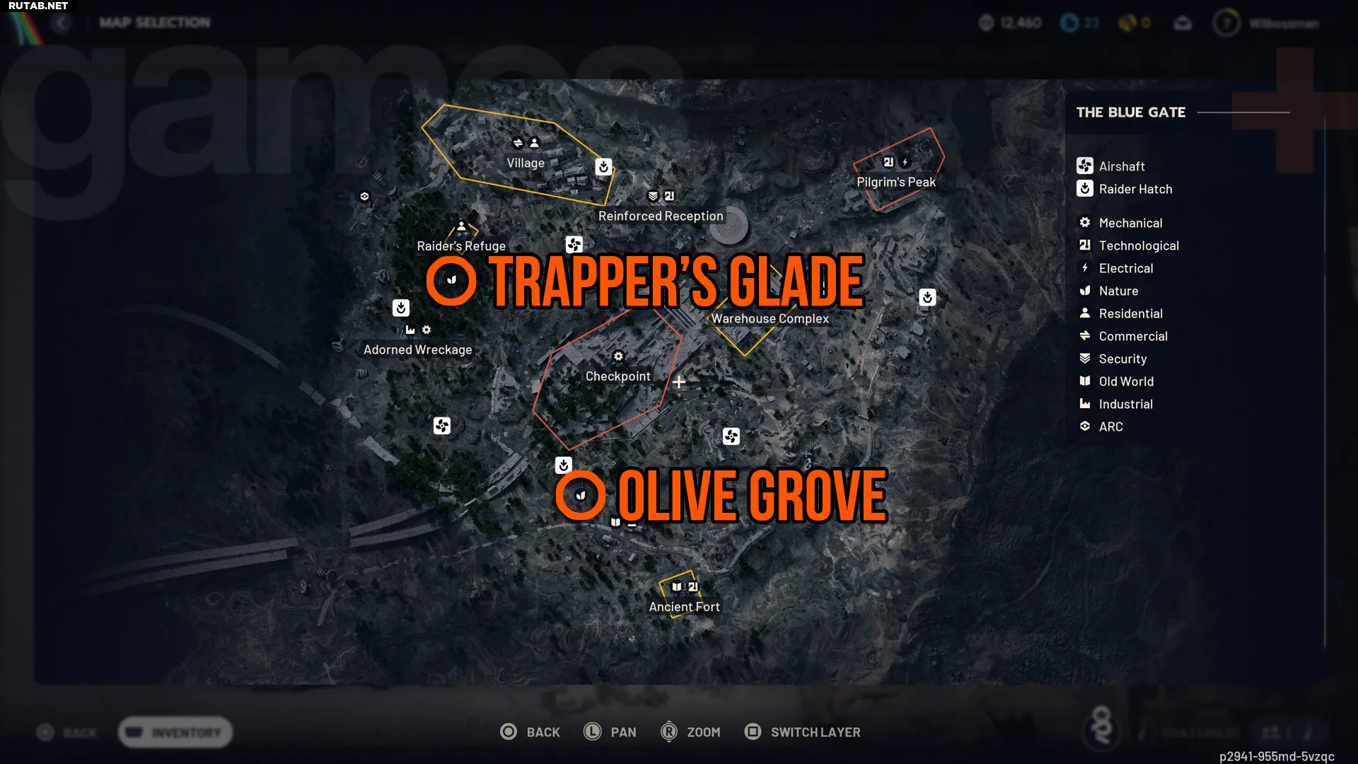 Лучшие места для поиска абрикосов — это области, отмеченные на карте как содержащие добычу категории «Природа». На картах выше мы выделили основные зоны для поиска: