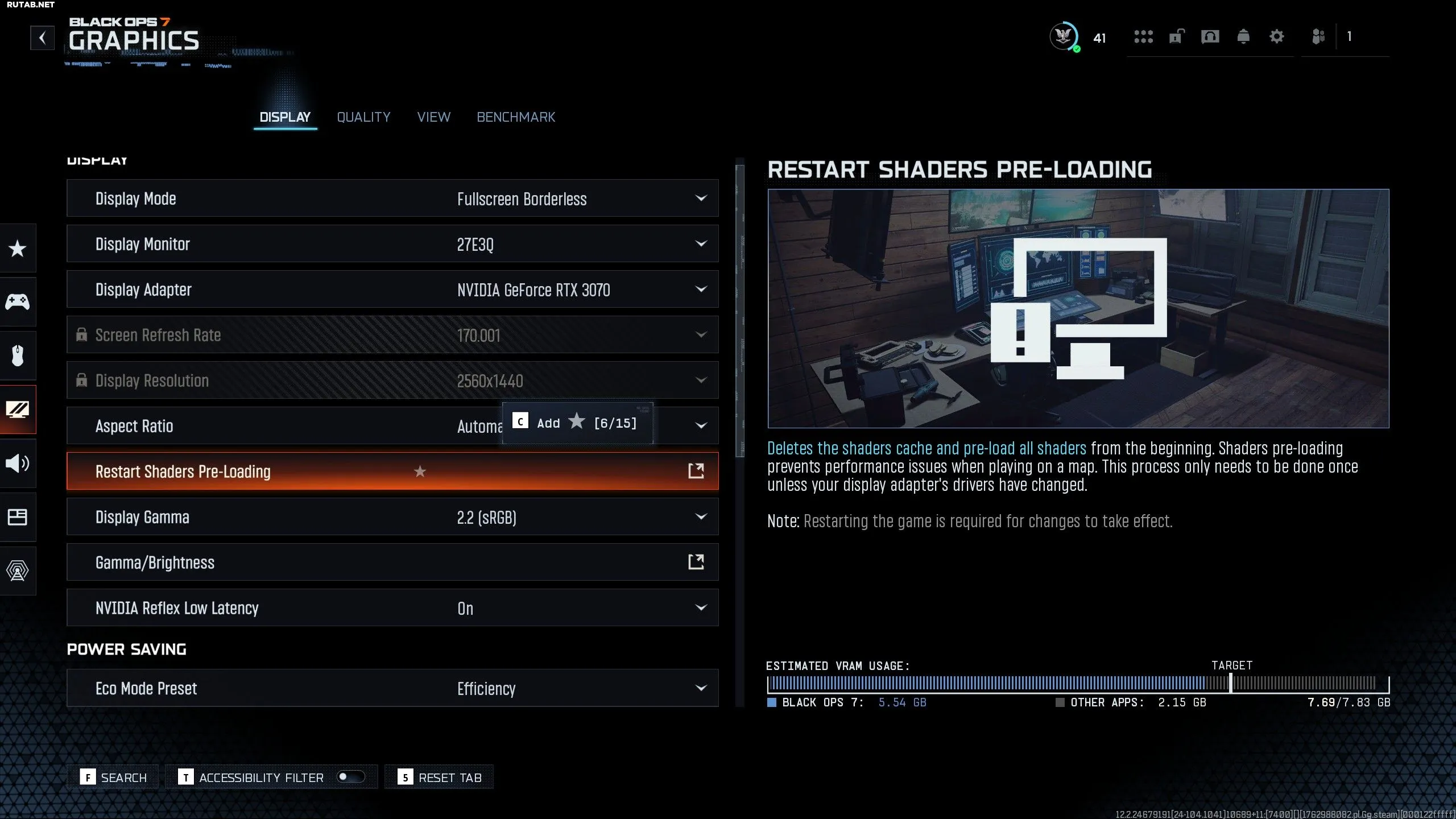 - Нажмите «Перезапустить предзагрузку шейдеров»