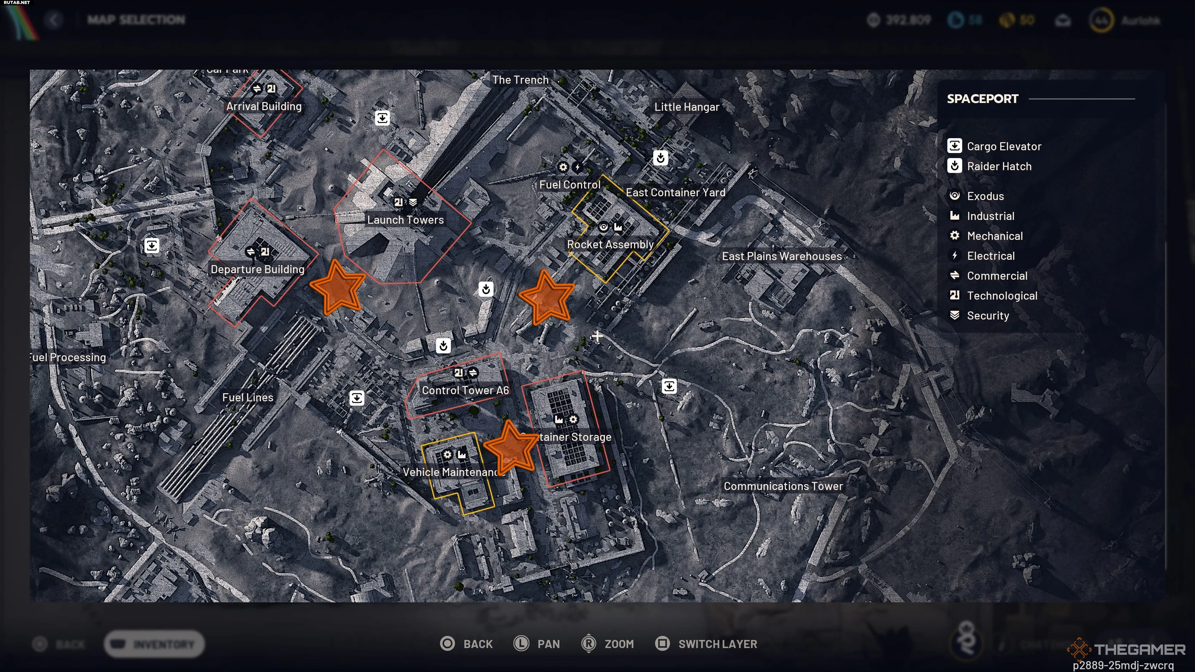 | Космопорт | У ракетного сборочного цеха Между обслуживанием транспорта и складом контейнеров У западного и восточного ангаров У стартовых башен |