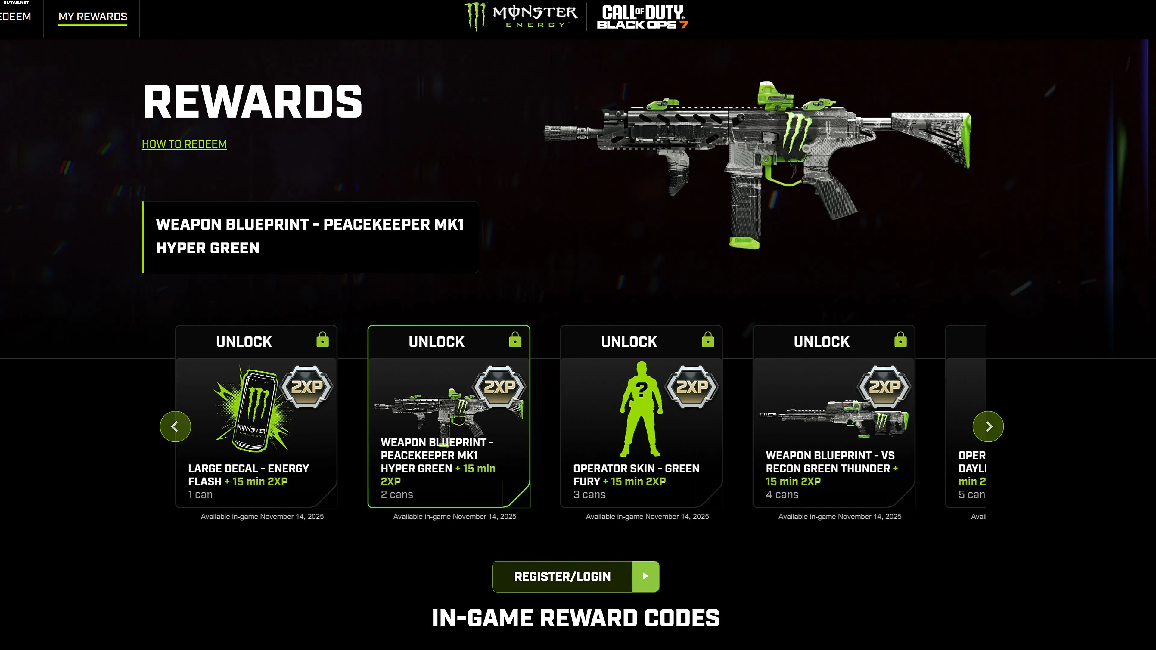 - Monster x Black Ops 7: активируйте коды с банок энергетиков для получения опыта и наград