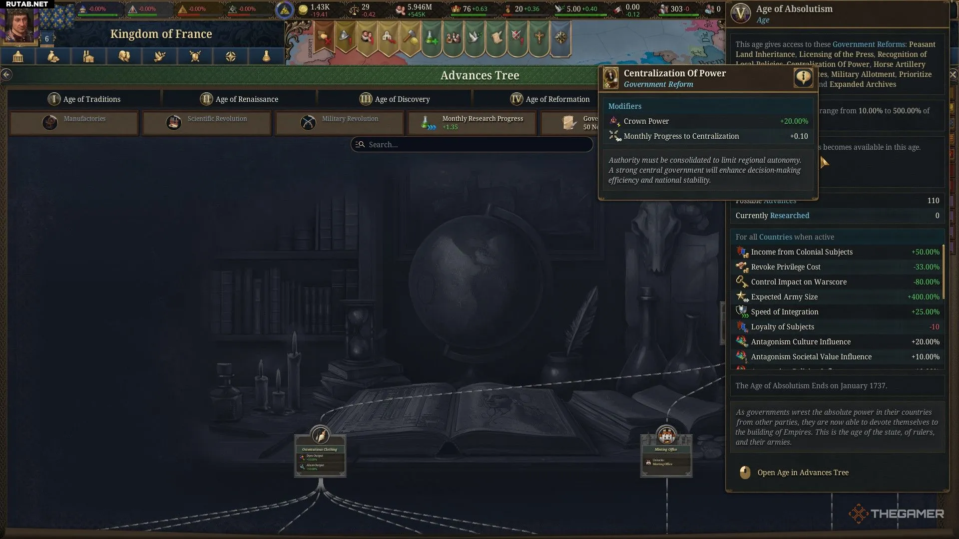 Особый потенциал для усиления власти короны и проведения реформ открывается с началом Эпохи абсолютизма в январе 1637 года. В этот период доступны уникальные бонусы, а правильный выбор технологий позволяет значительно укрепить позиции монарха.