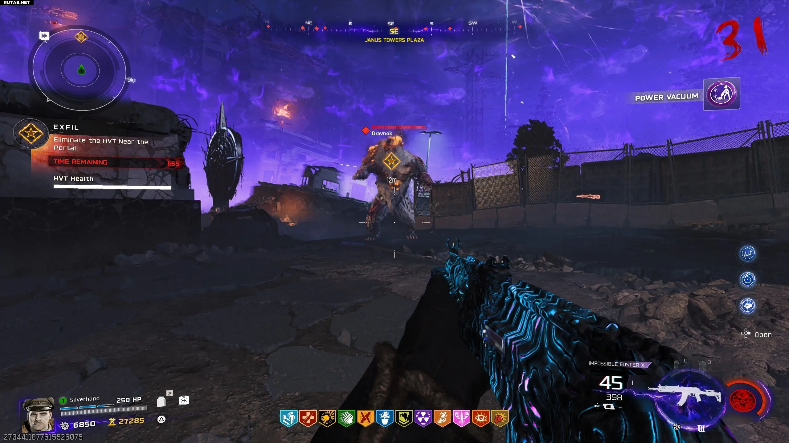 После взаимодействия с активной телефонной будкой (действует всего несколько минут и становится неактивной, если её проигнорировать или сменится раунд) запускается голосование. Если вы согласитесь на эксфил, вас ждёт сложное испытание с одной целью: уничтожить высокоценную цель (HVT) рядом с порталом. HVT представляет собой усиленную версию зомби-медведя Зурсы — элитного противника в режиме «Ashes of the Damned». Это существо очень сильное, поэтому убедитесь, что у вас есть подходящее снаряжение: улучшенное оружие, перки, броня и даже бонусные Streak'и. На уничтожение HVT даётся 2 минуты. Если не уложиться в это время, вас ждёт поражение. Успешное убийство цели позволяет взаимодействовать с телефонной будкой, войти в портал и получить экран успешного эксфила. Во время боя с HVT появляются зомби, но их можно игнорировать — нужно сосредоточиться только на цели.