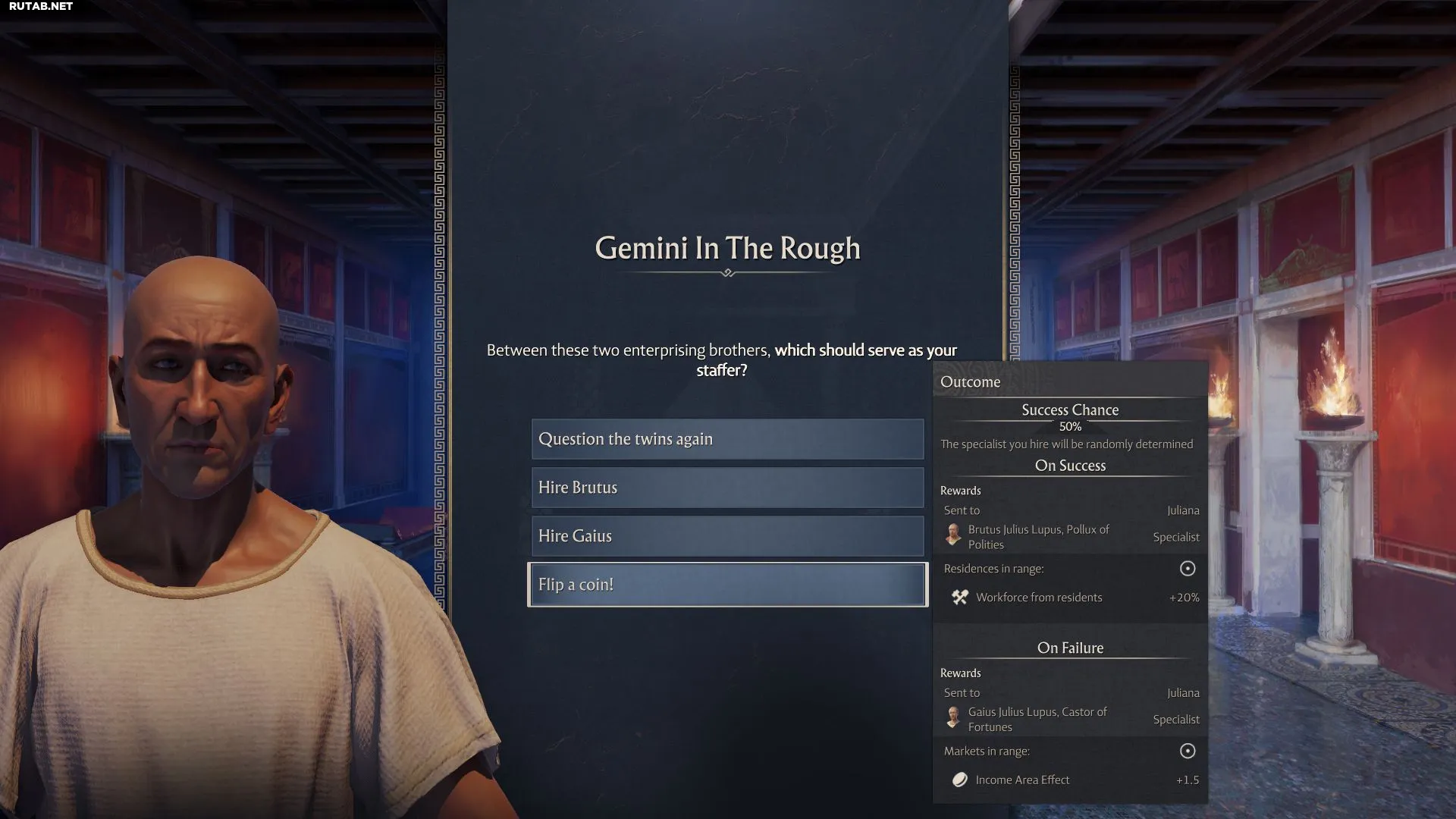 В Anno 117: Pax Romana вам предстоит не только управлять жителями, но и нанимать специалистов, которые предоставляют различные бонусы. Во время кампании вам предложат выбрать между братьями Юлиями Лупами — Брутом и Гаем. Несмотря на взаимную неприязнь, оба готовы работать на вас. Вот что стоит учитывать при выборе.